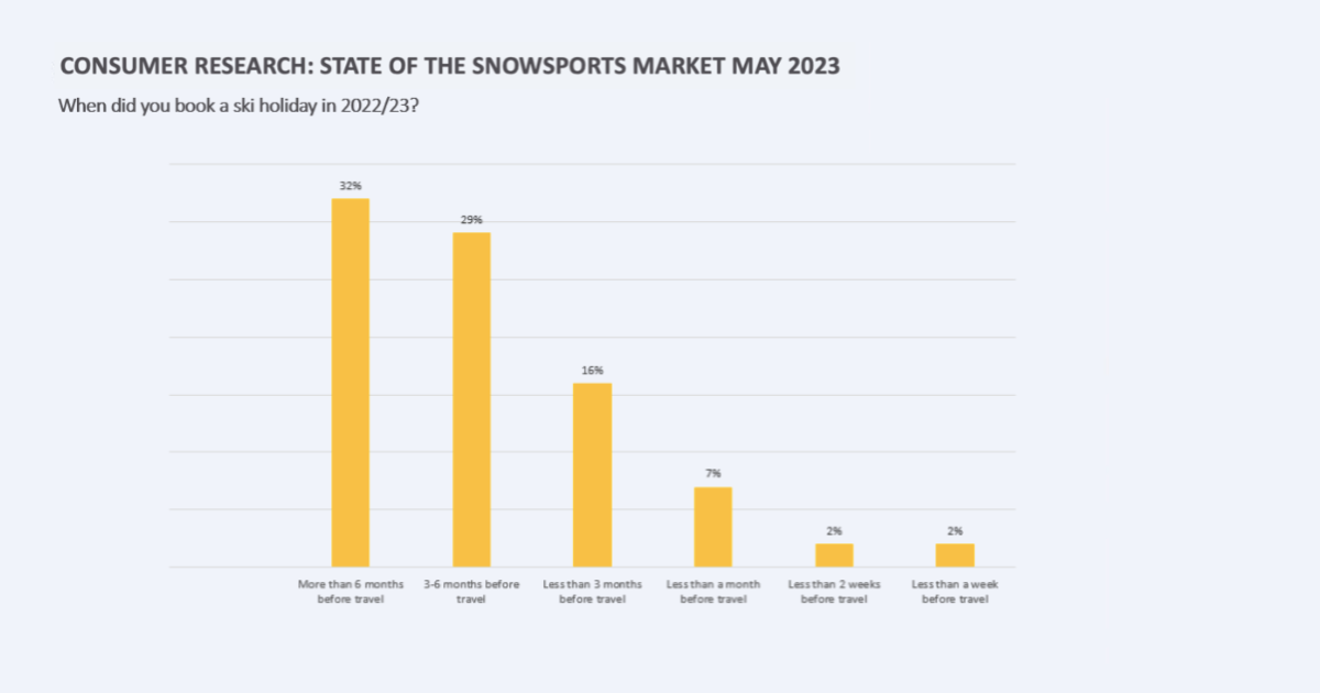 We know from our own customer surveys, and supported by The Ski Club of Great Britain’s Consumer Research in May 2023, that around 60% of skiers now like to book their winter holiday at least six months in advance to secure the peak weeks.