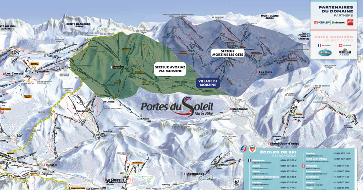 We know, it can get a bit confusing! Morzine, Les Gets and Avoriaz are three separate resorts, and all part of the Portes du Soleil ski area which covers 12 resorts in total.