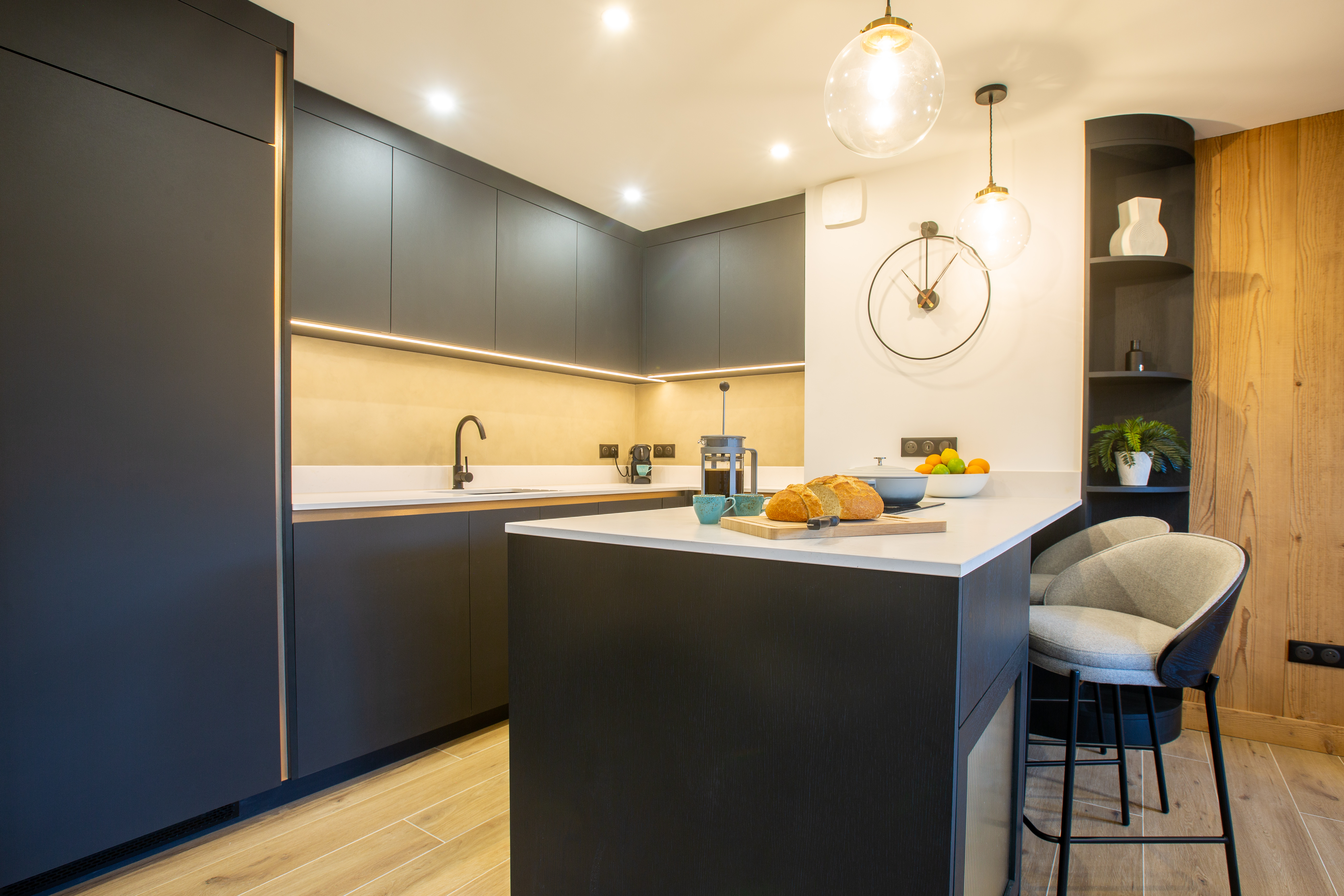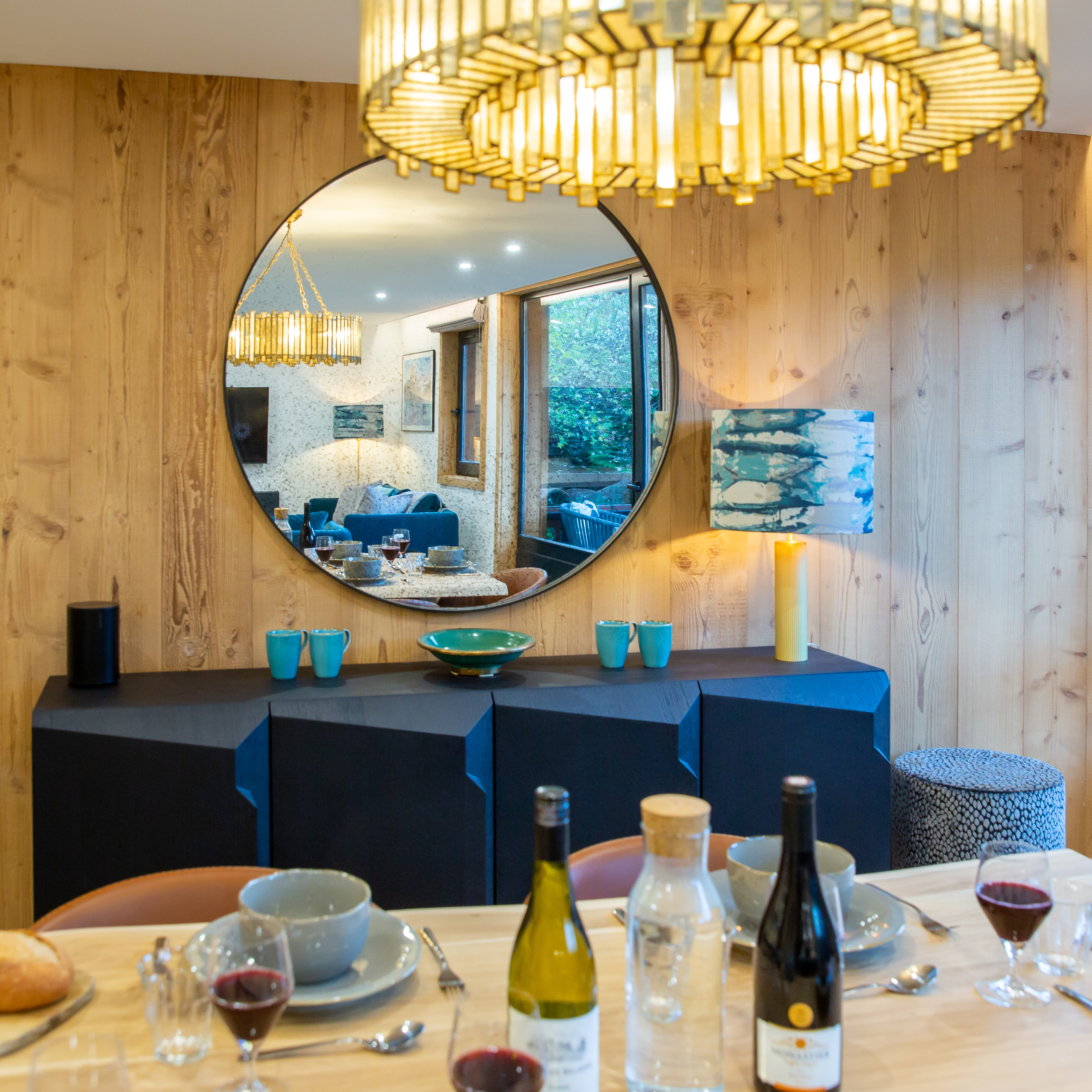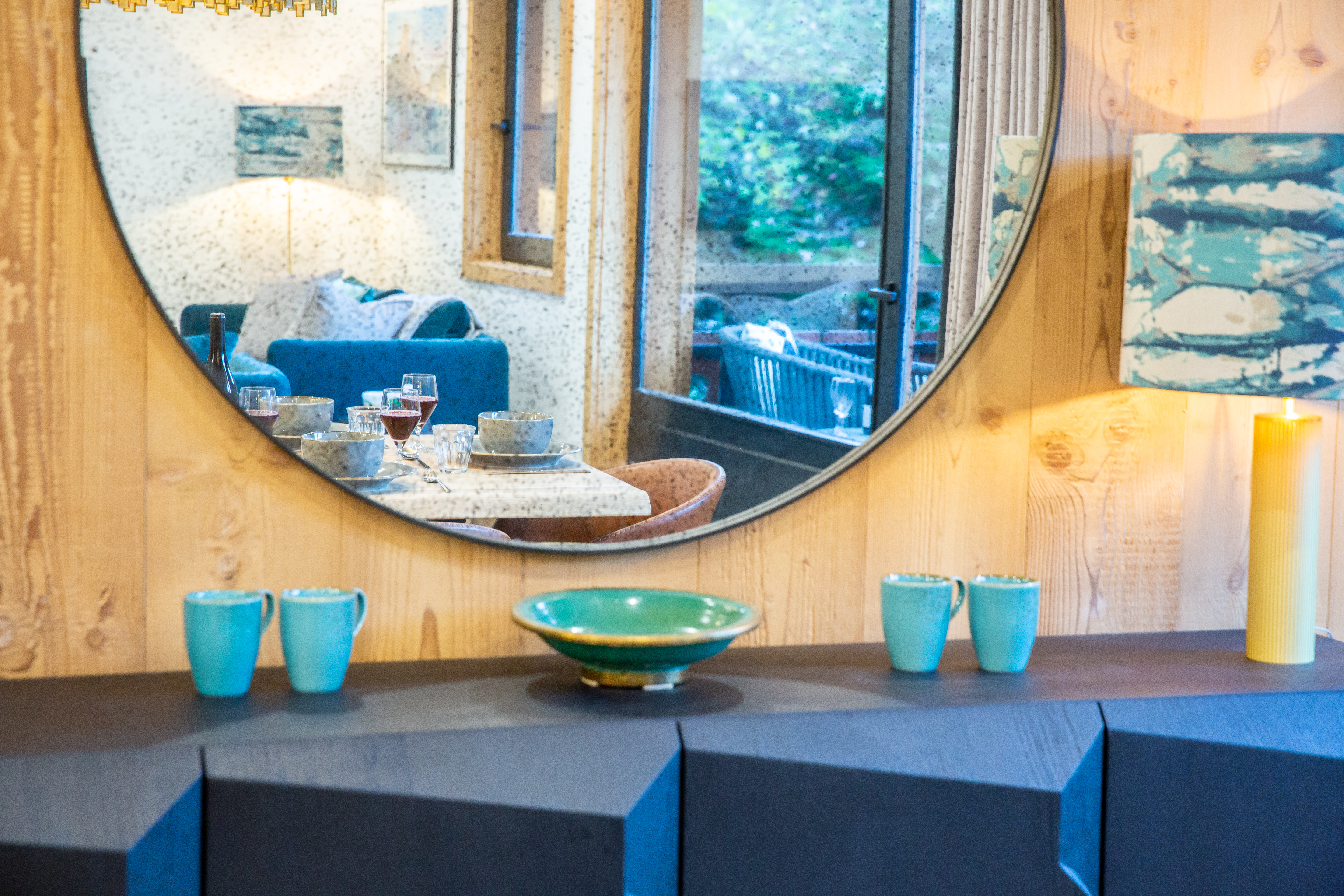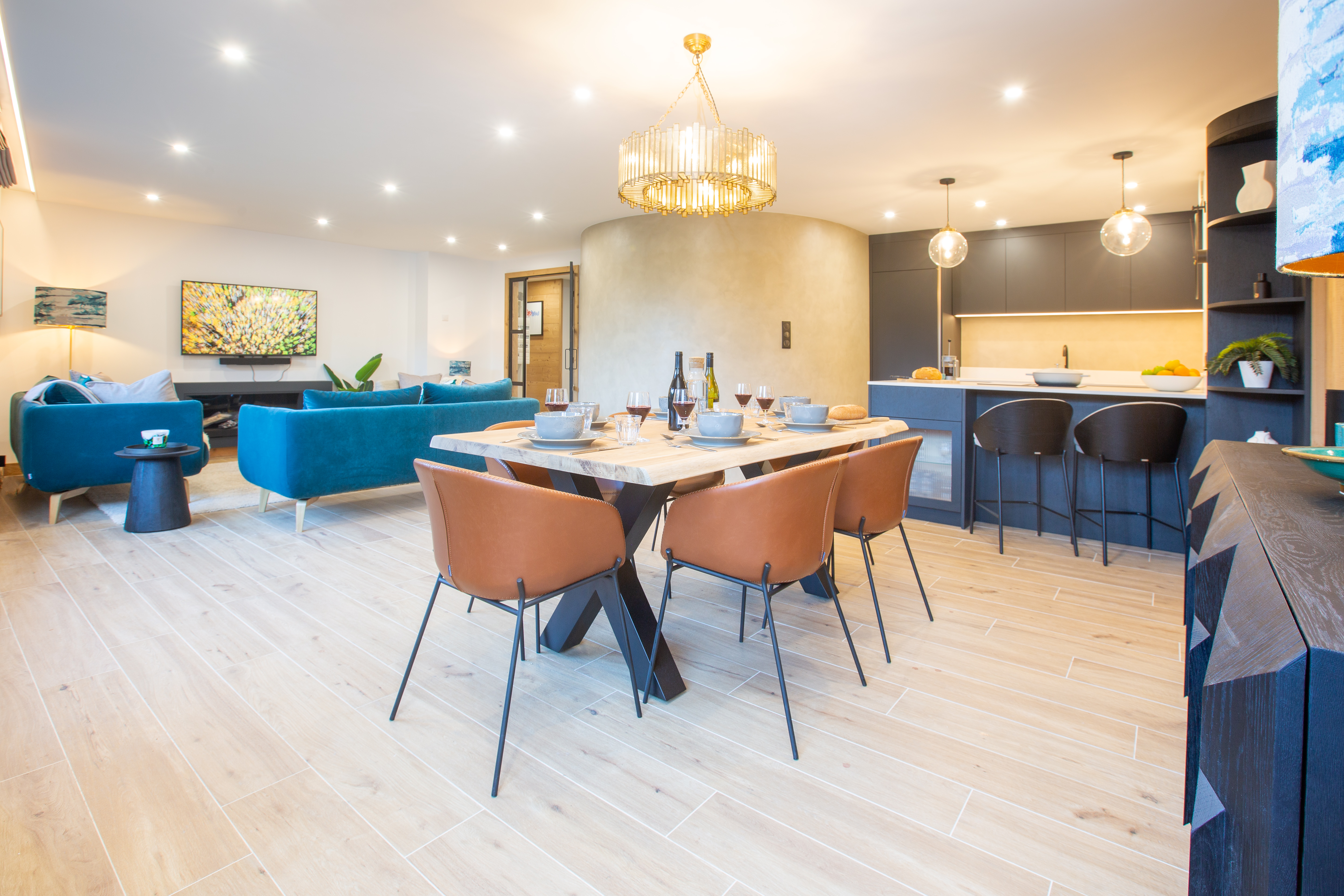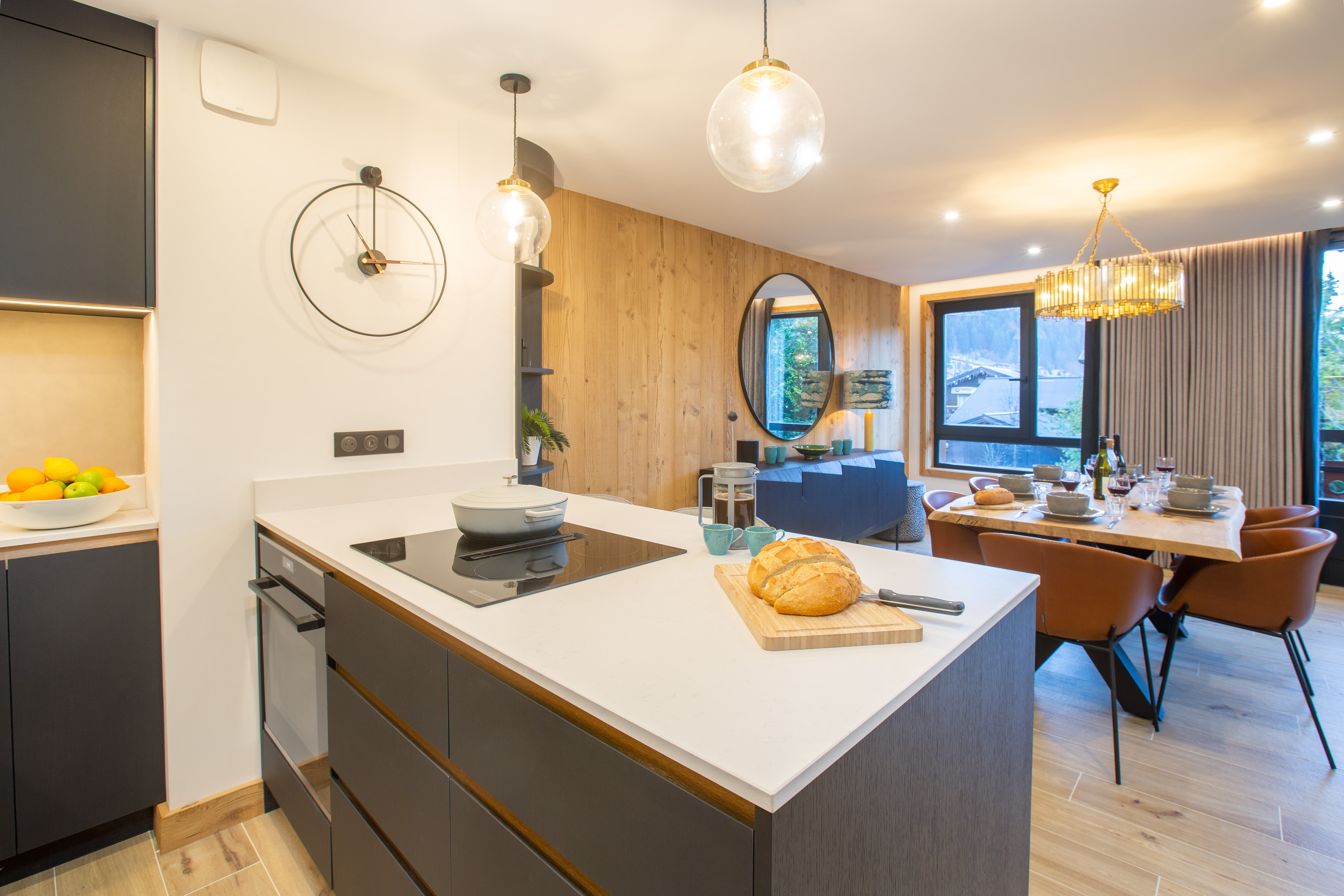 Apartment Demi Lune was recently refurbished by leading interiors specialist RS interiors. A fantastic size in general, the whole apartment has been meticulously planned with all mod cons and every detail has been considered. There is a large open plan living space, feature curved walls and crittal glass doors which make it feel really light and airy. Offering plenty of space for 6 people, there is a large dining table, modern kitchen, comfortable sofa area with LED electric fireplace and large balcony.