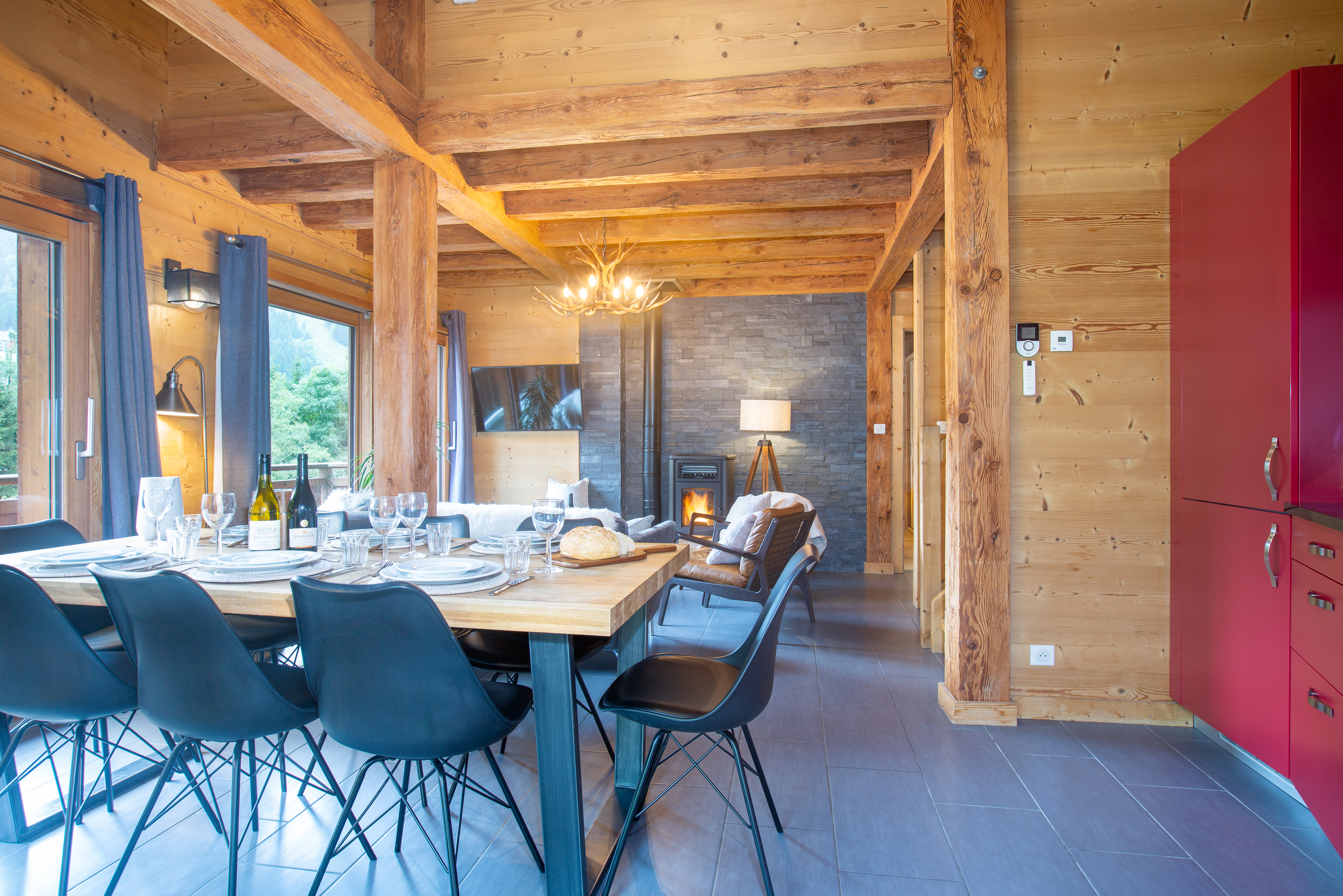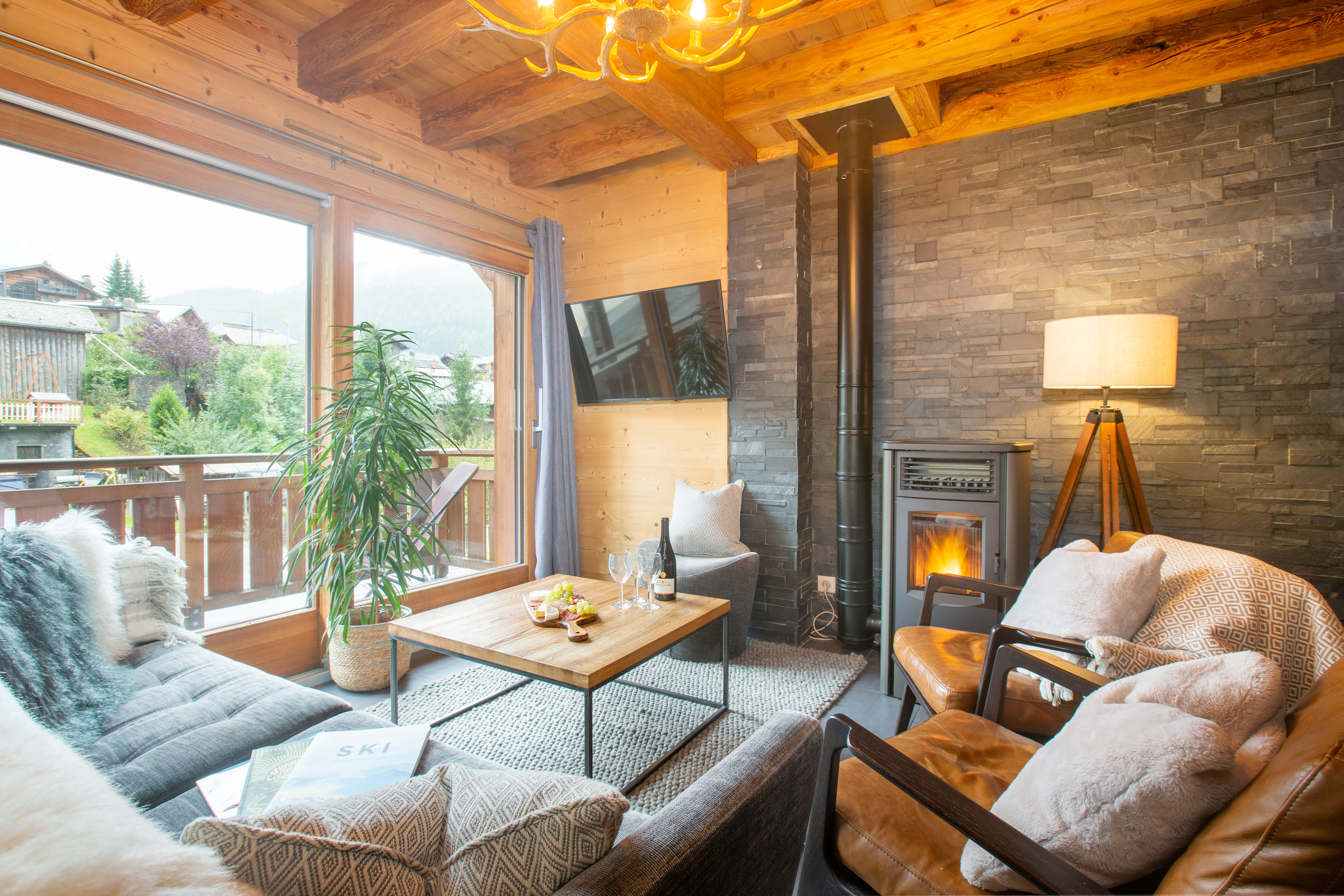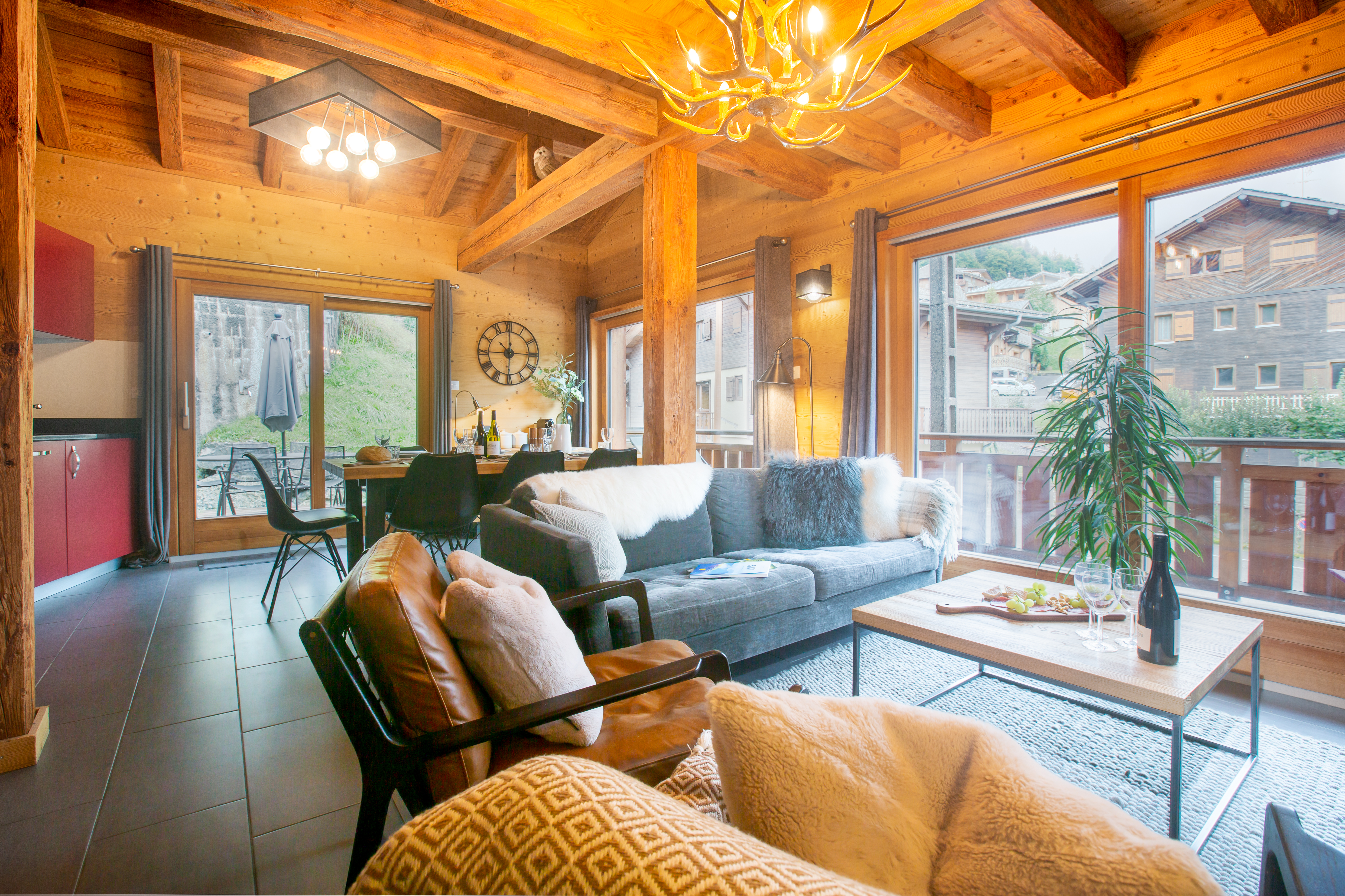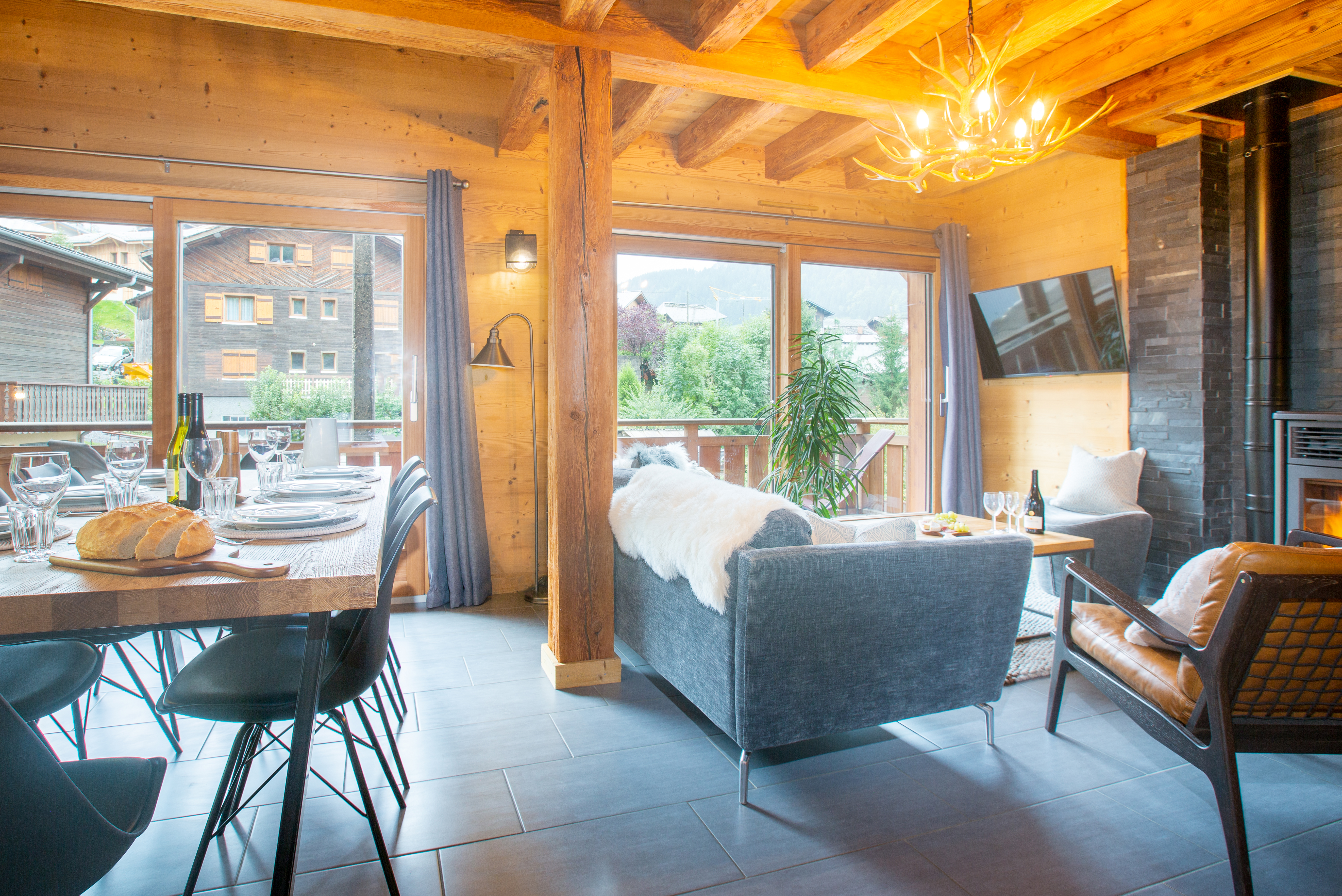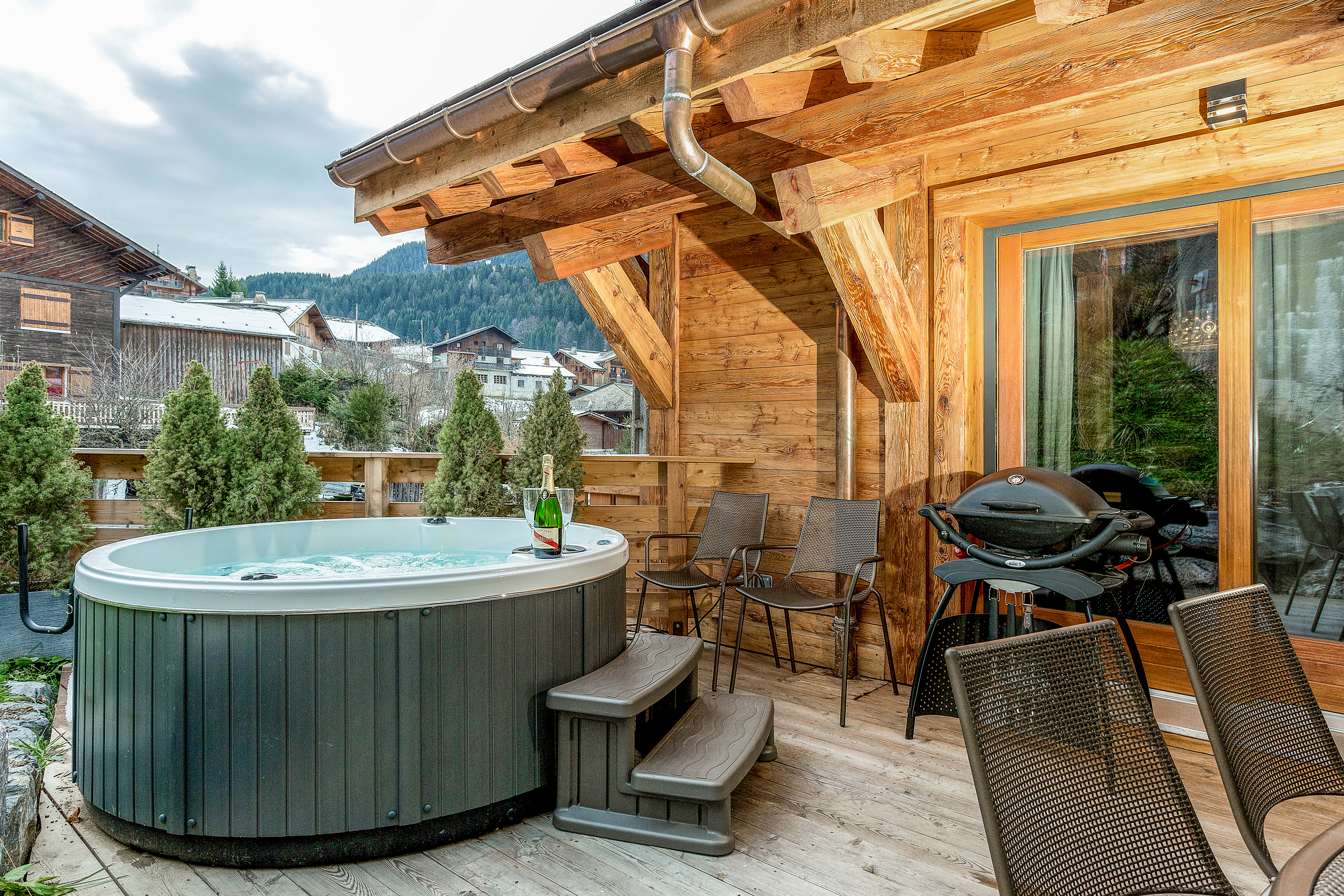 Stunning townhouse chalet with outdoor Hot Tub in Morzine. Split over 3 floors, with 3 large ensuite bedrooms sleeping 7 people, all within a 5-minute walk of shops and restaurants in Morzine.