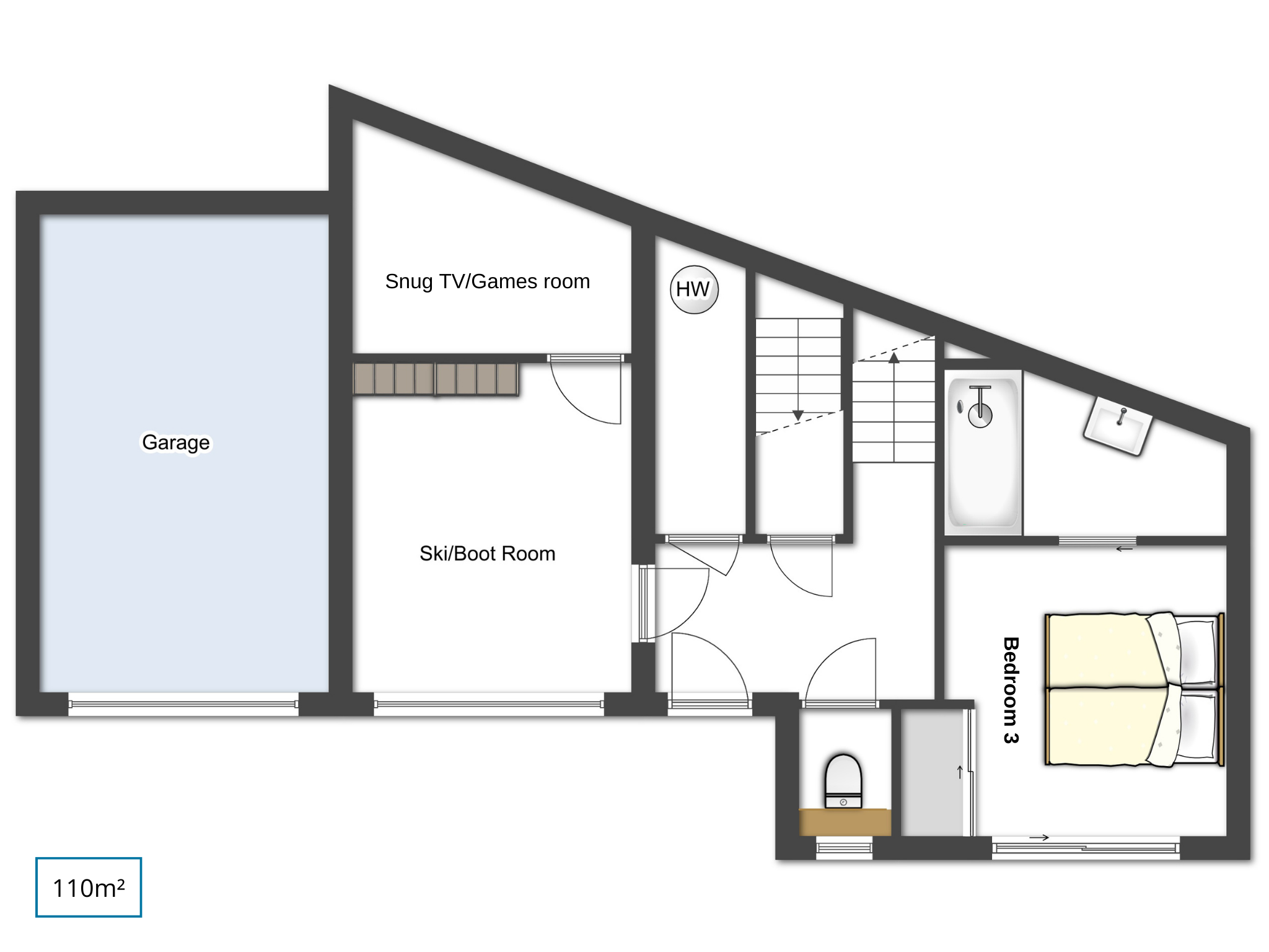 The ground floor entrance level has a garage for bike storage, heated boot room with boot dryers and a laundry area with a washing machine and tumble dryer. There is a snug on the ground floor, great for kids, with bean bags, huge Flat Screen TV, Xbox, Apple TV, and Netflix. The ground floor bedroom has a large bathroom with walk in shower.