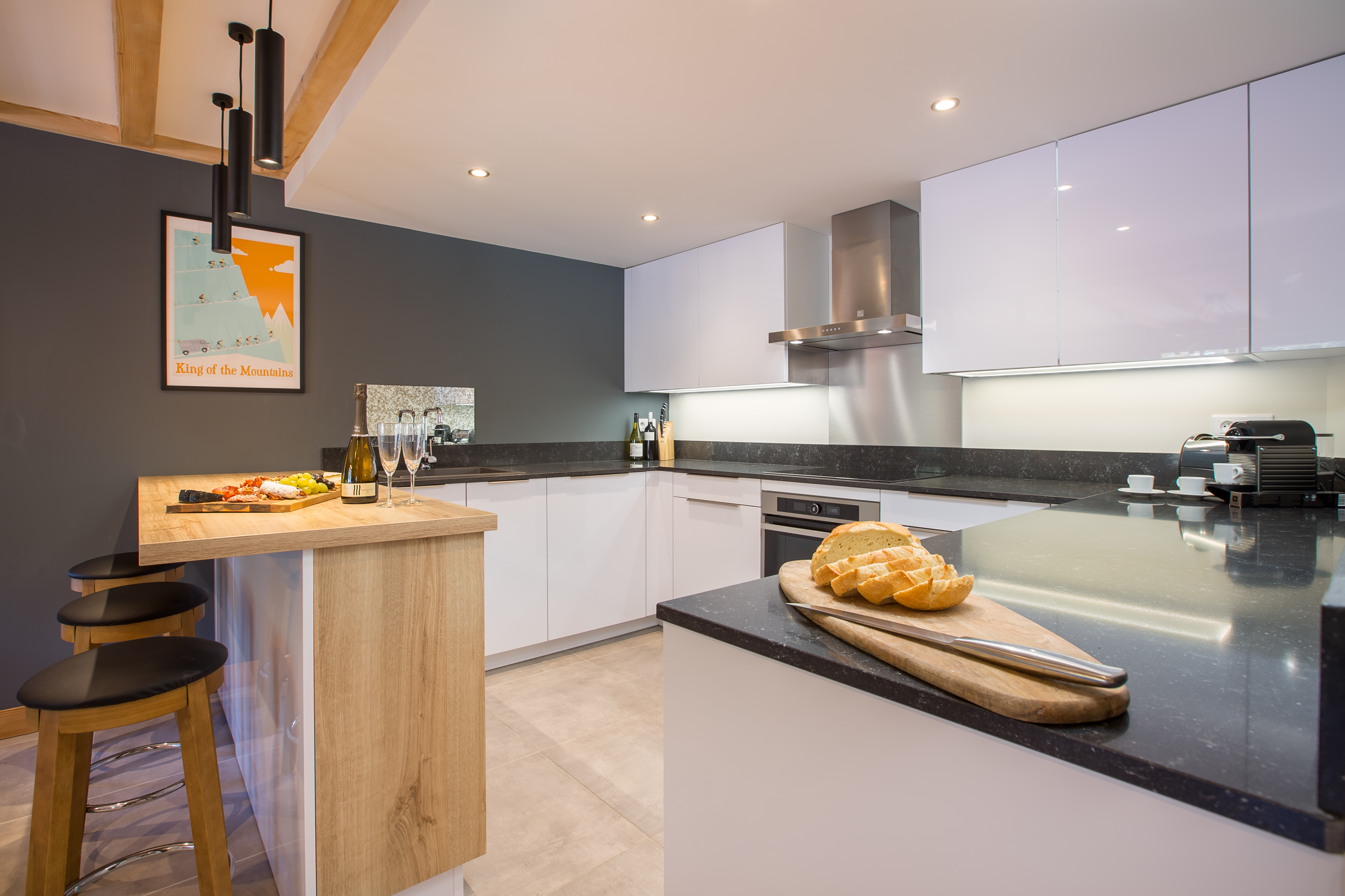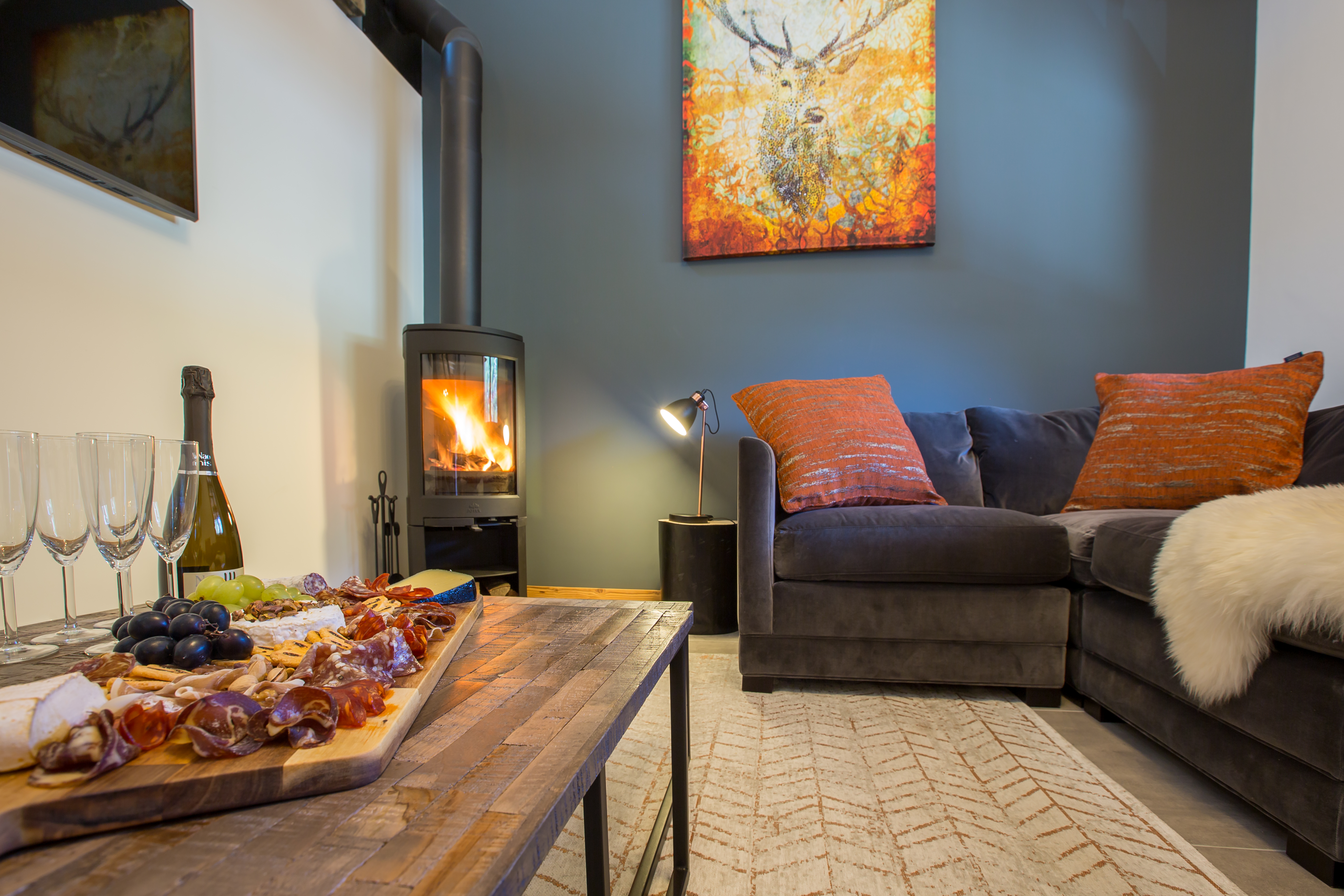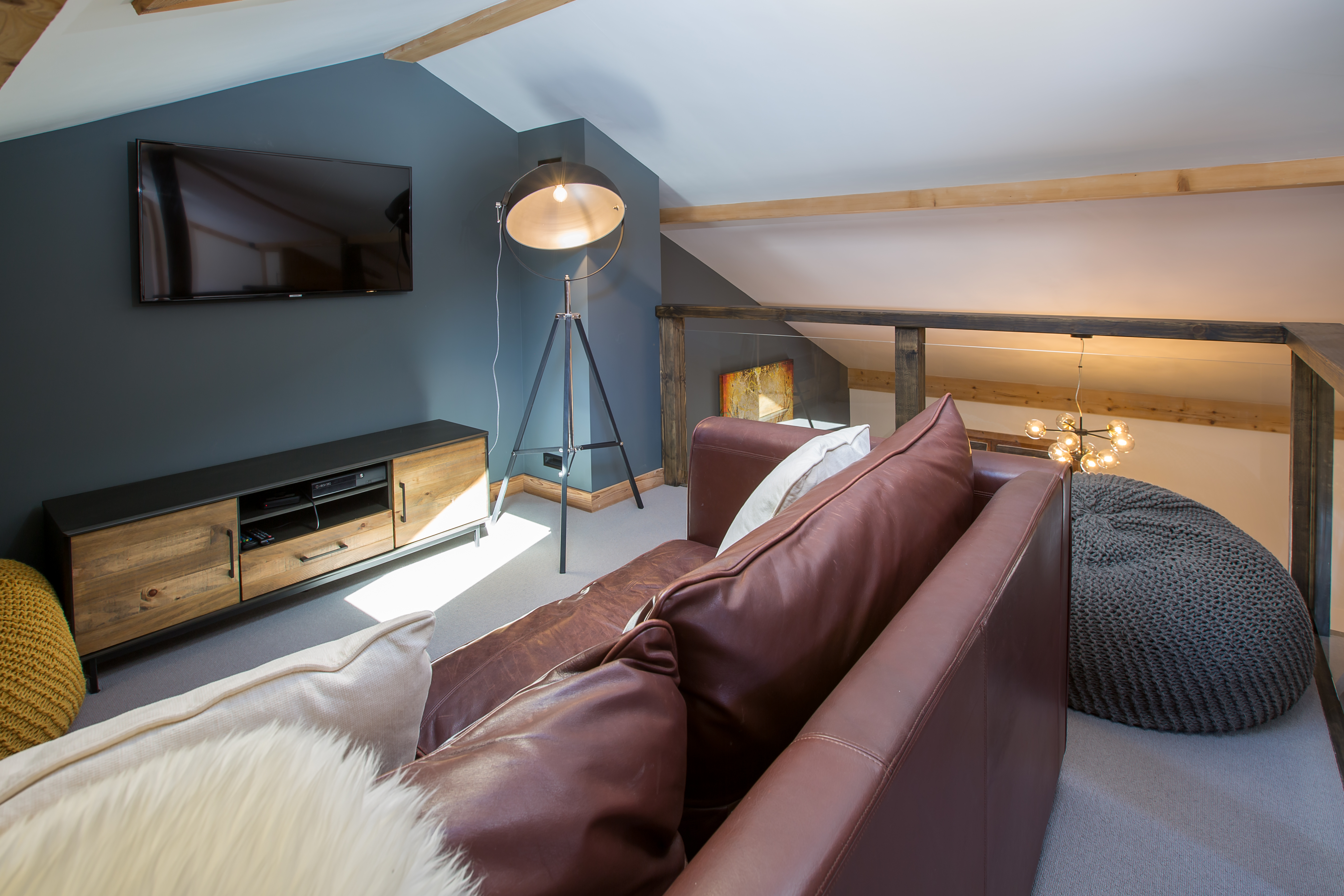 The main level features a beautiful open plan living space with large lounge and corner sofa, a modern kitchen and dining area with breakfast bar and all mod cons. There is a staircase leading to a seperate mezzanine TV and Gaming area with additional sofas which lead up to the third bedroom. There is also a wood burning stove and the usual Bose Bluetooth Speaker and large flatscreen TV with UK and French TV channels, Netflix, Games Console and Free WiFi.