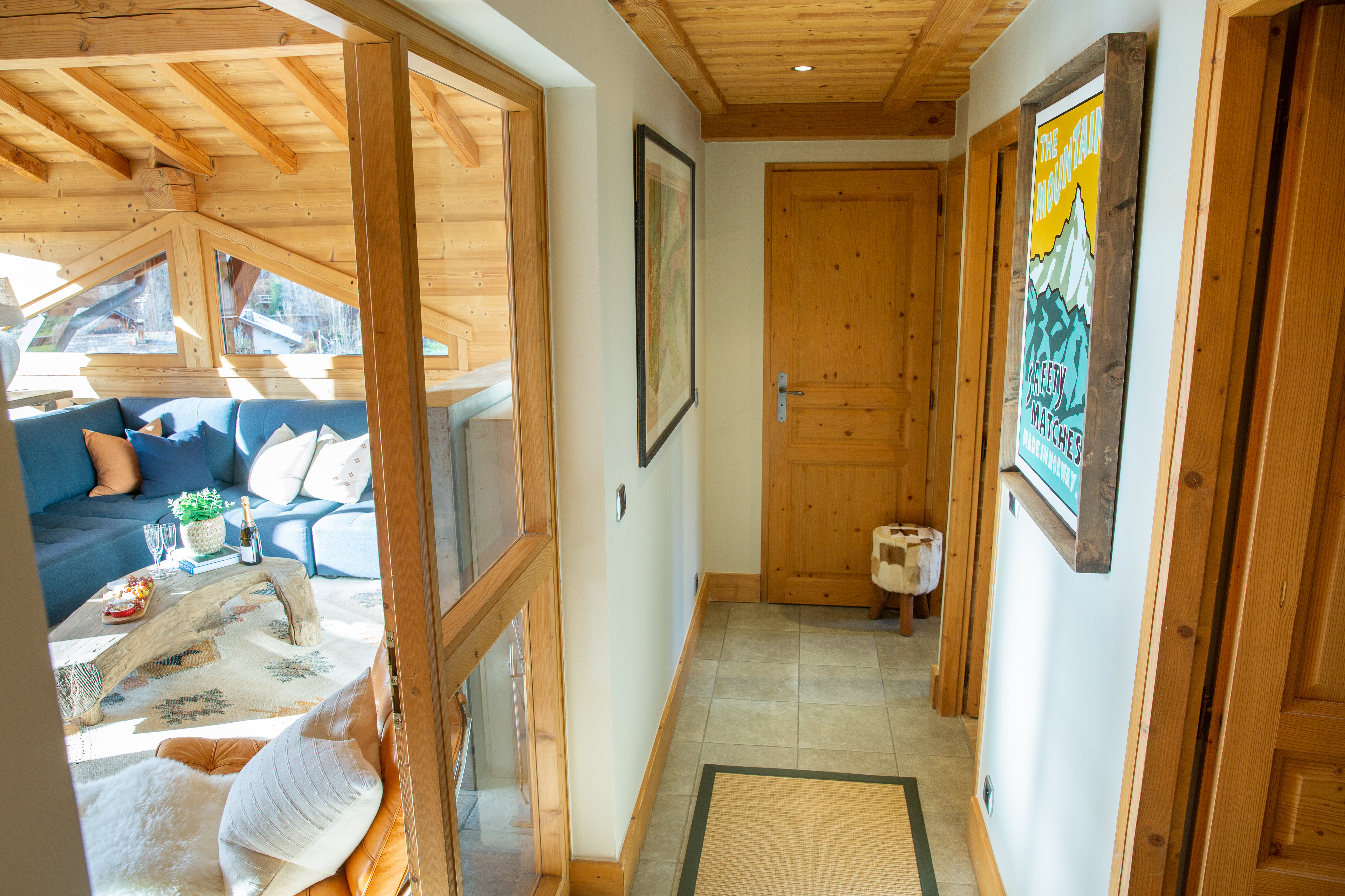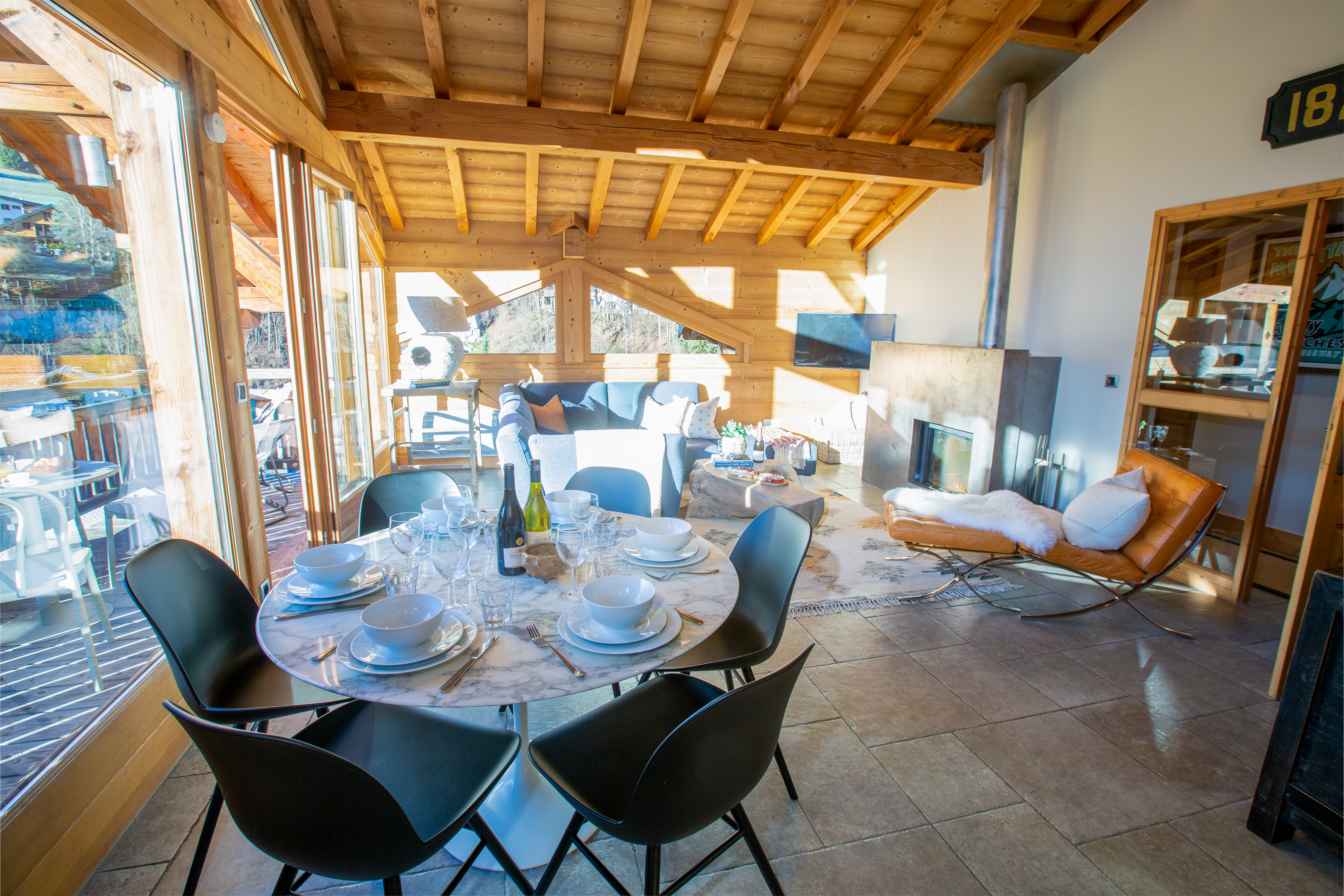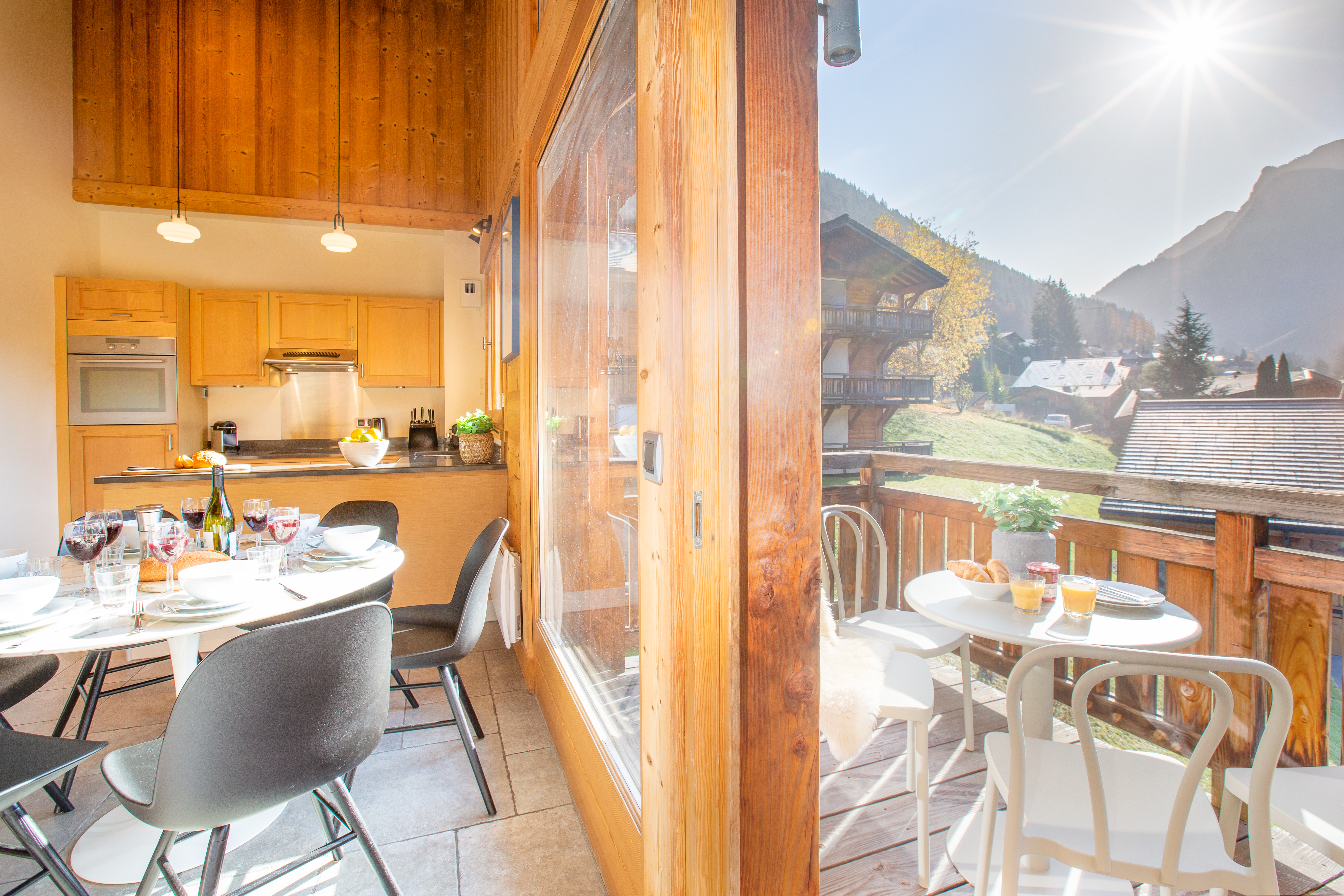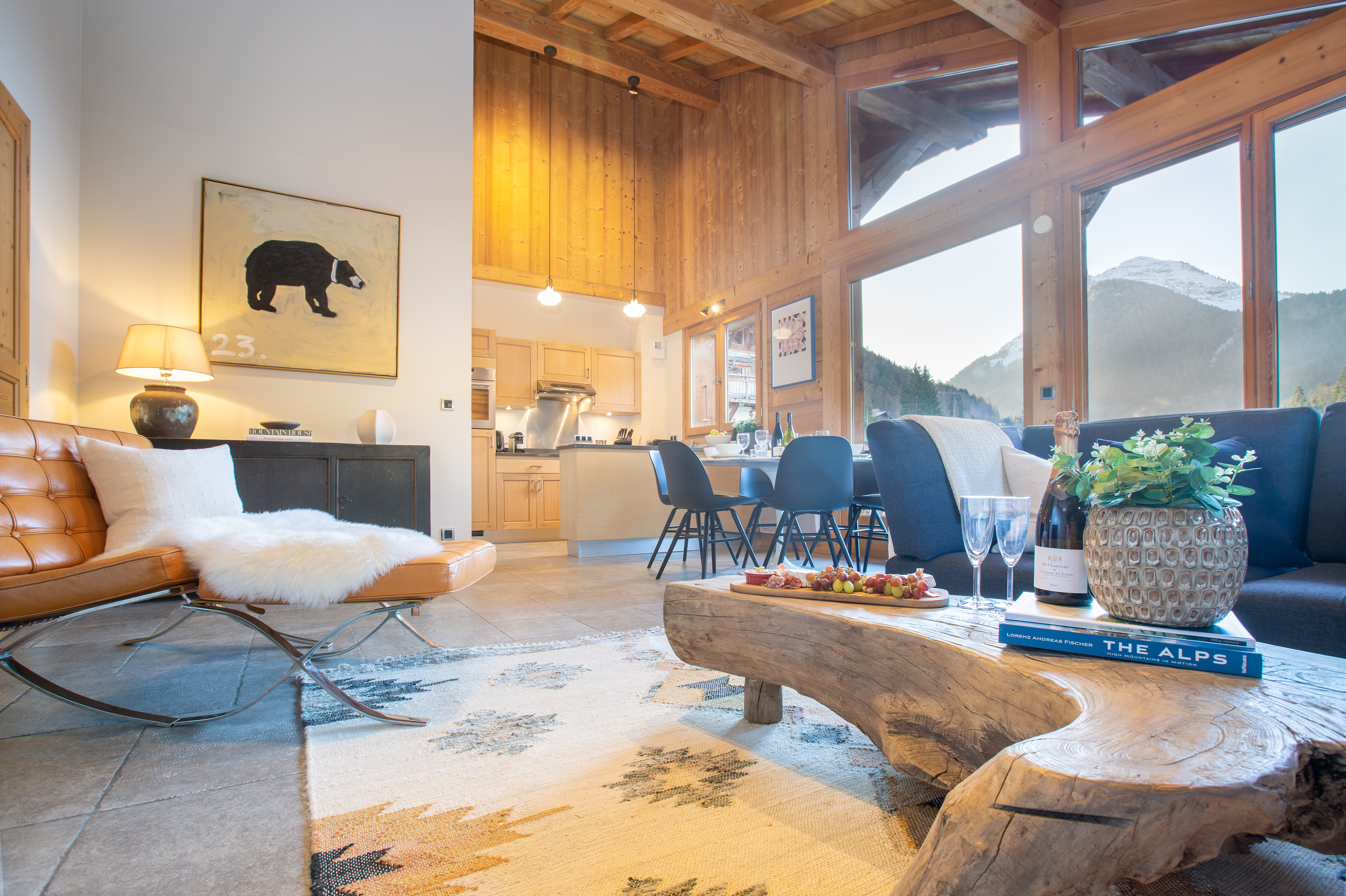 Penthouse Des Fes has a large living area, with timber vaulted ceilings and a Designer Log Burning Fireplace and plenty of comfy seats and a corner sofa. There is a large private balcony and the apartment has a Smart TV with UK and French TV channels, a Nintendo Wii and DVD player, a Bose SoundTouch wireless speaker, and Wifi.