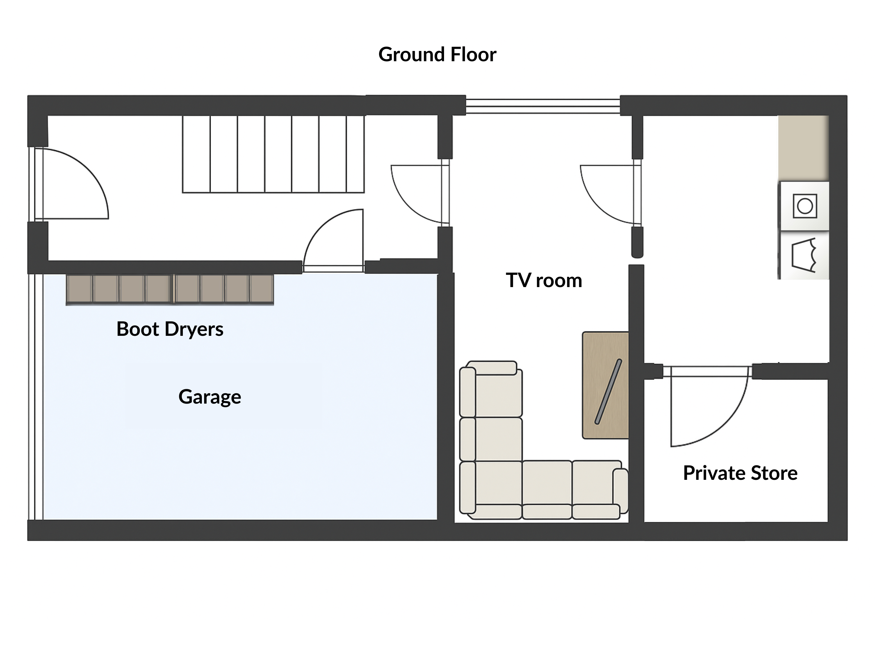 The ground floor entrance level has a large garage for bike storage, heated boot warmers and ski storage, plus a utility room with and a drying area and washing machine and tumble dryer. There is also a TV snug on the ground floor, great for kids, with bean bags, huge Flat Screen TV, Xbox and Netflix.