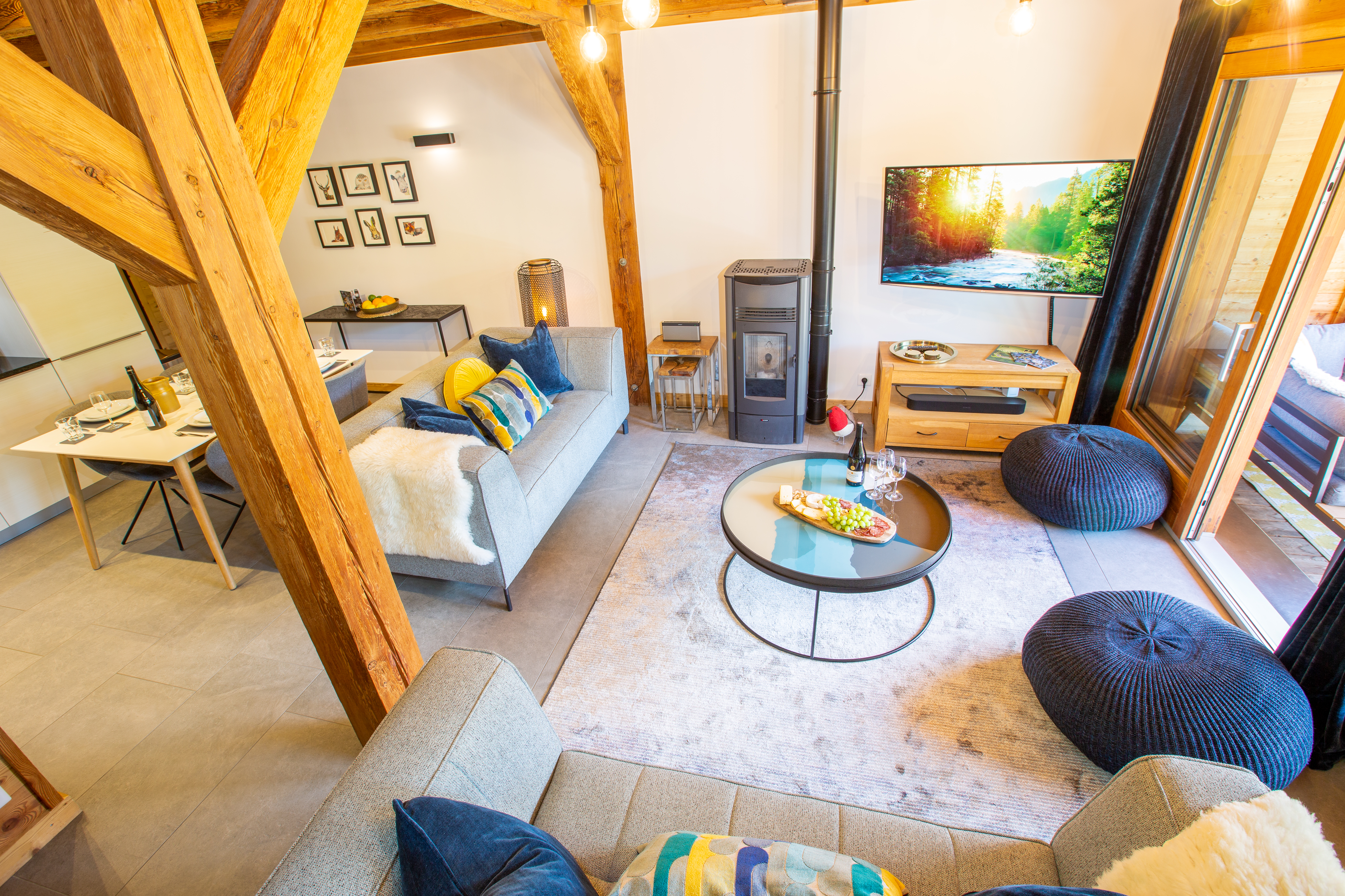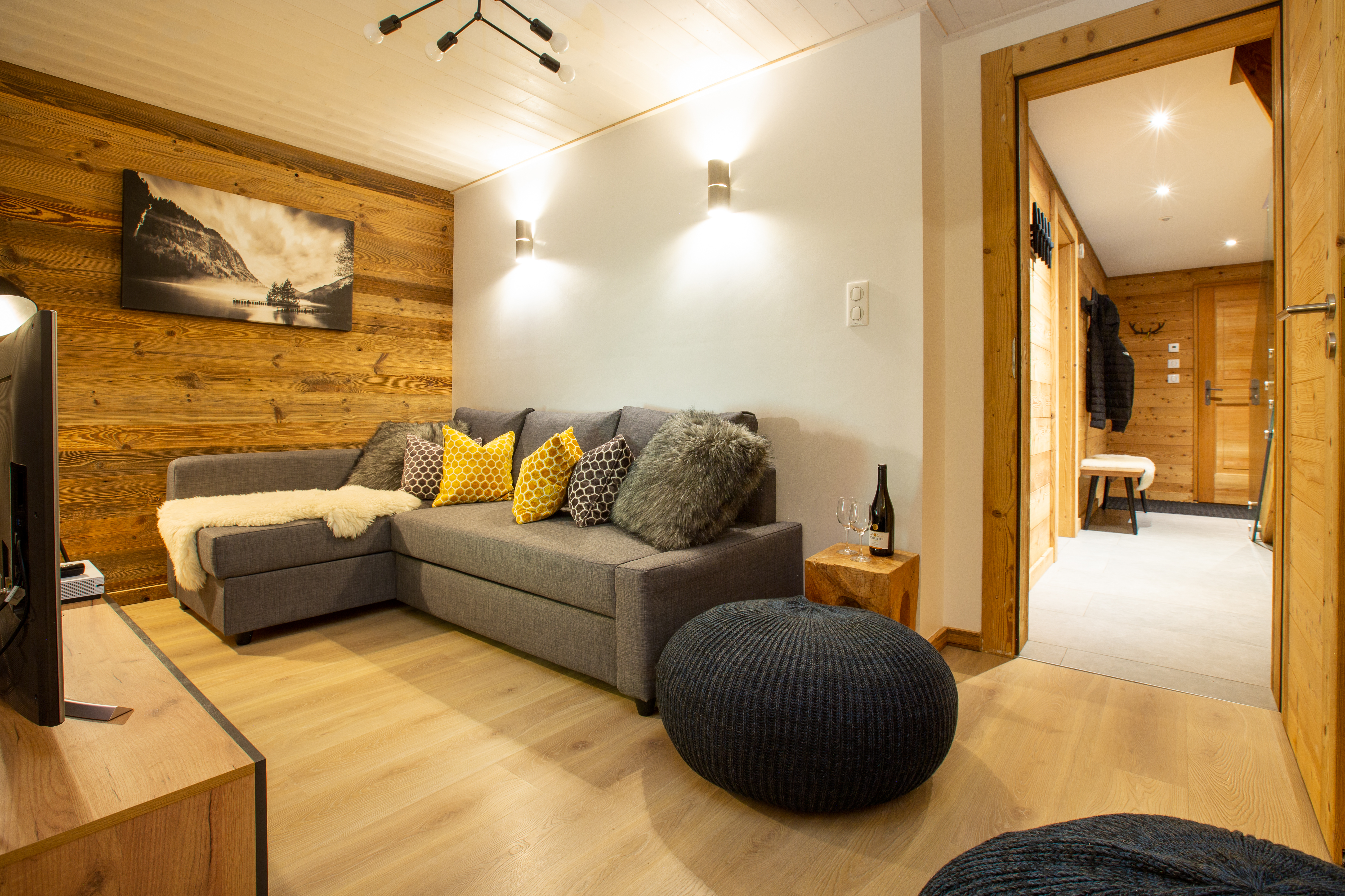 Petit Chalet Robin is a semi detached chalet that is approx. 5 minutes walk from Rue du Bourg and is minutes from the free ski shuttle bus. There is off-road parking right outside the front door and sliding glass doors that lead onto south-facing balconies with stunning mountain views and outdoor hot tub.