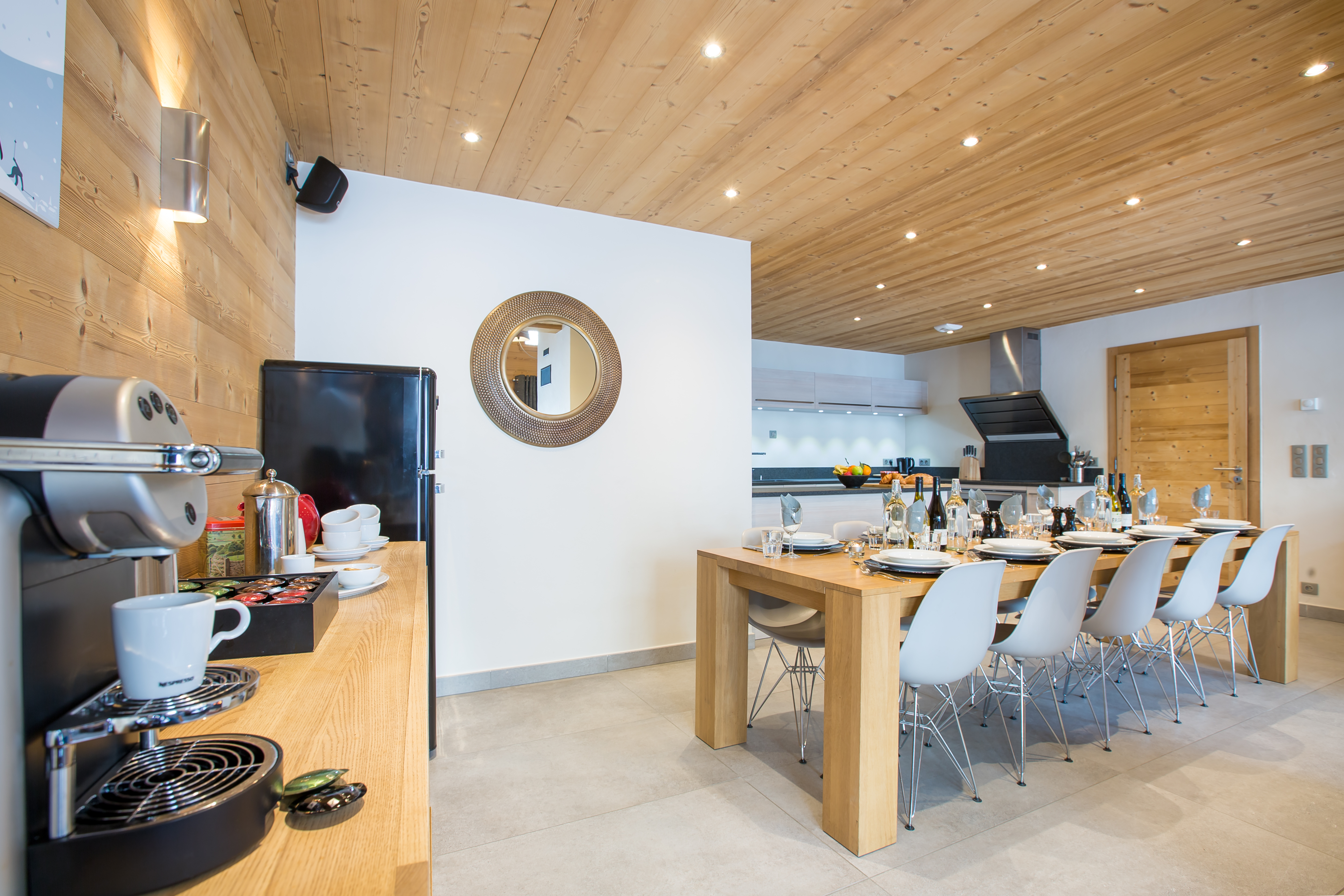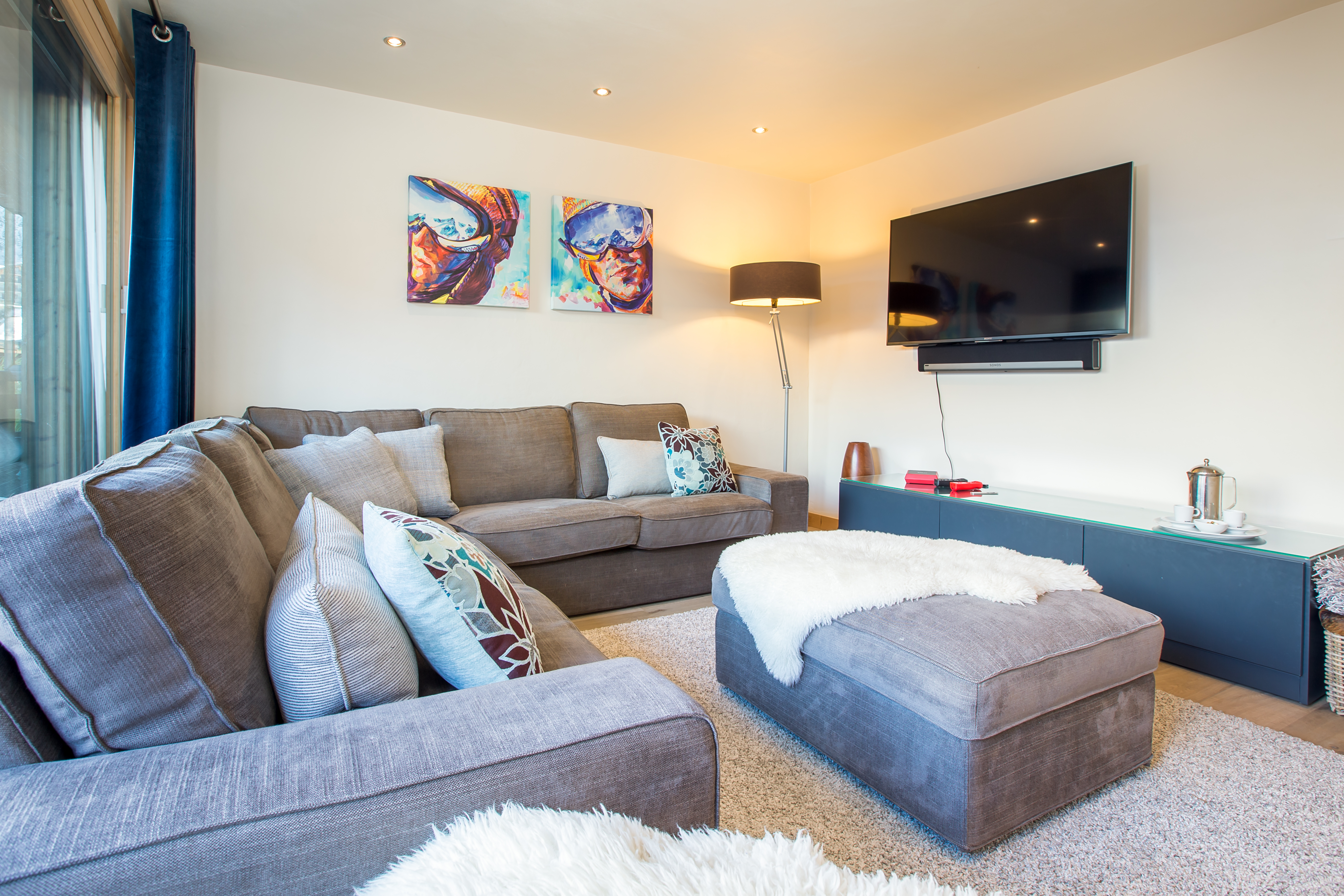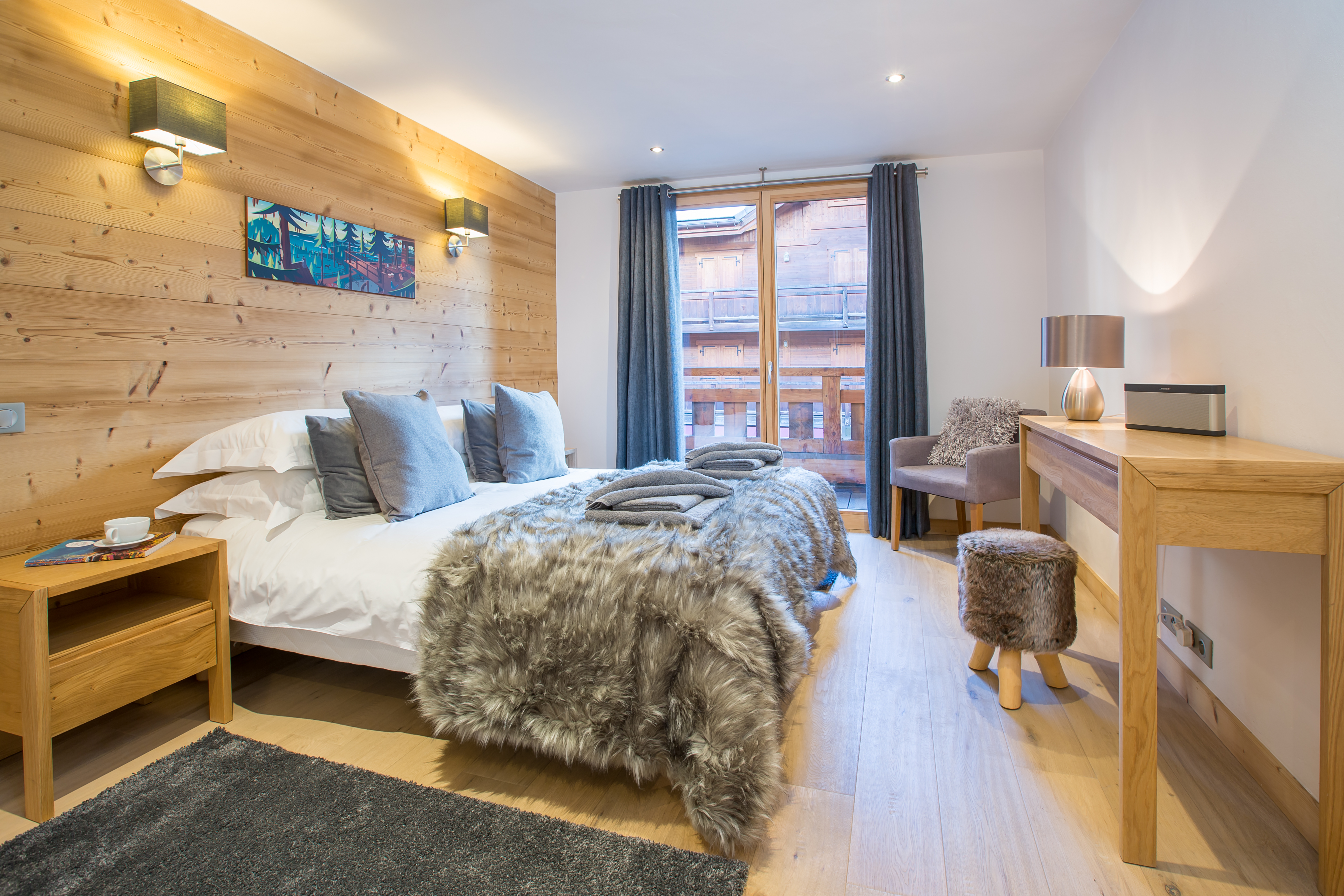 There are 2 private ensuite bedrooms on the floor below with bathrooms and balconies. As well as an extra lounge room with comfy sofa and TV. The chalet comes equipped with all mod cons such as Free Wifi and there is also a SONOS music system & Bose Sound Docks in every bedroom.
