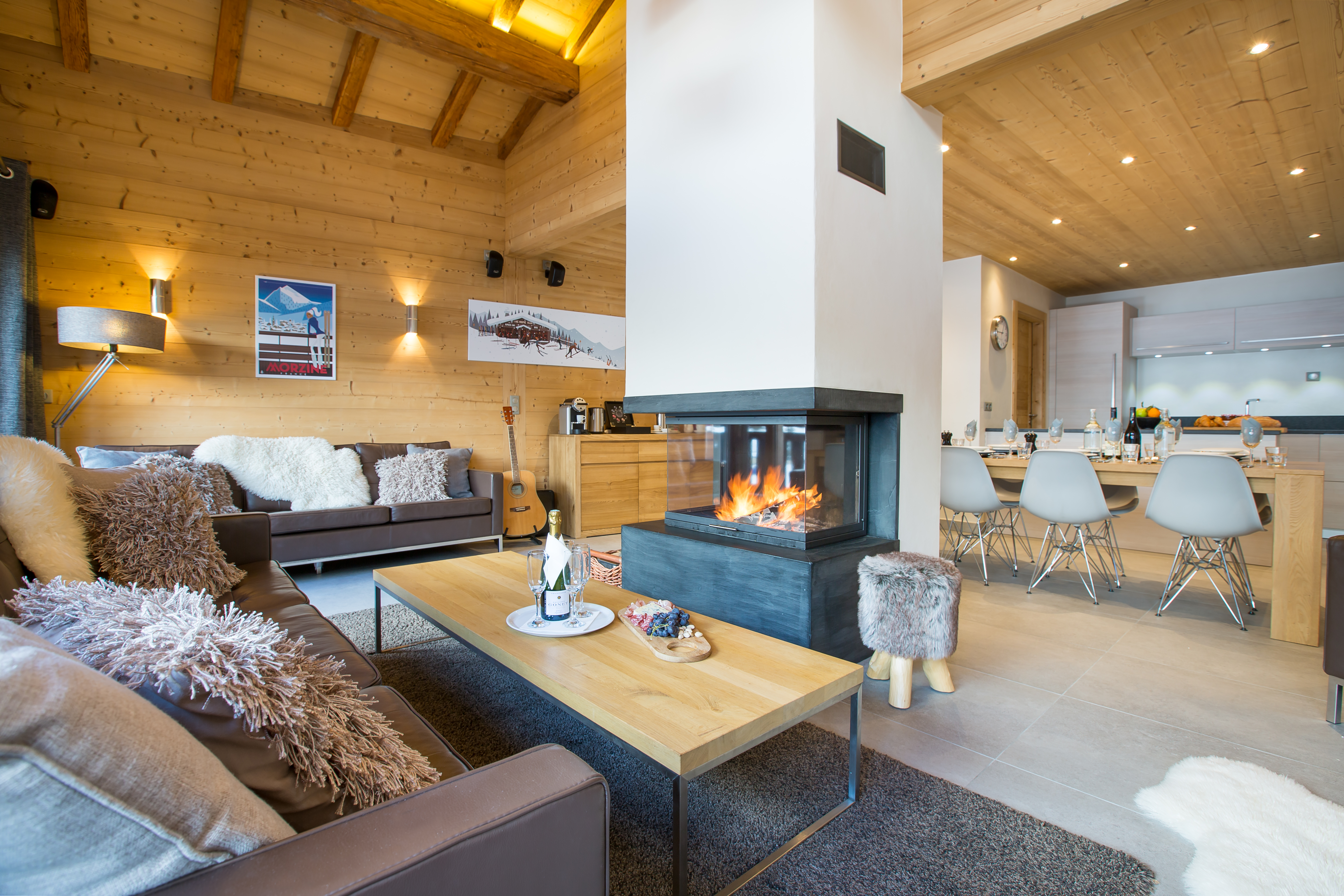 Large Split Level Chalet with 5 Bedrooms and Hot TUB in the heart of Morzine. 5 mins walk to the lifts. Two lounge areas, log burning fireplace and stunning layout with 5 x large spacious ensuite bedrooms. It's a winner!