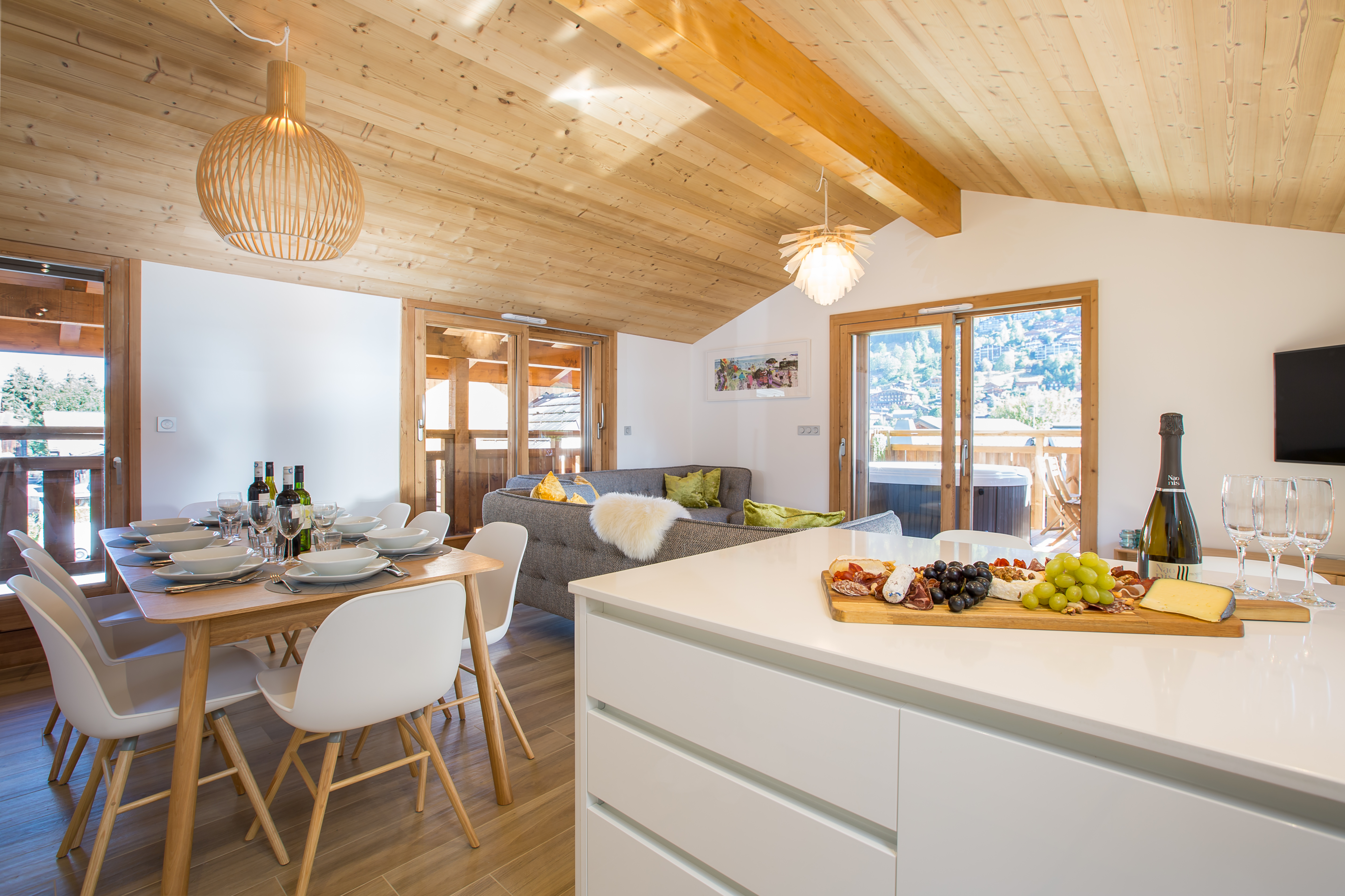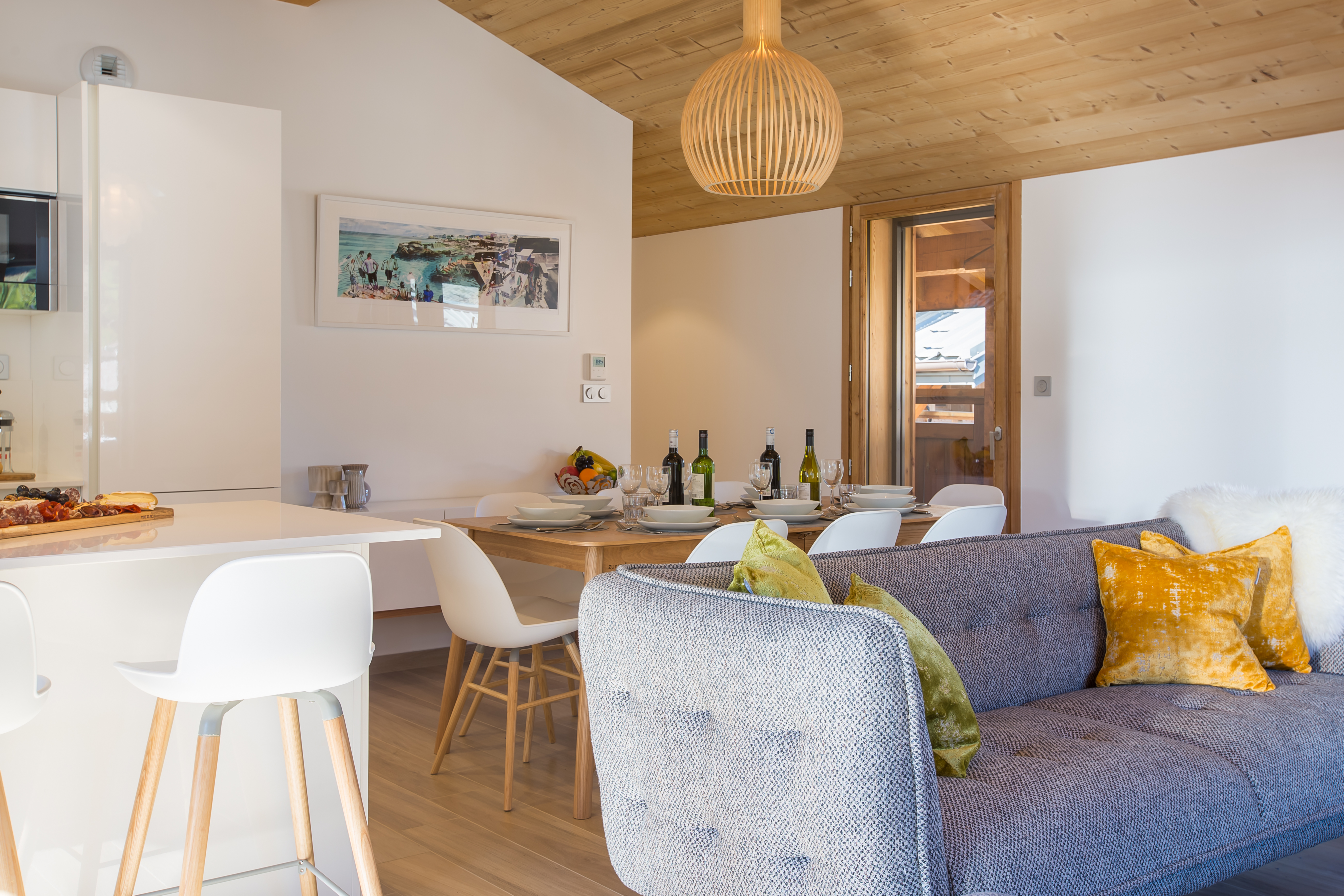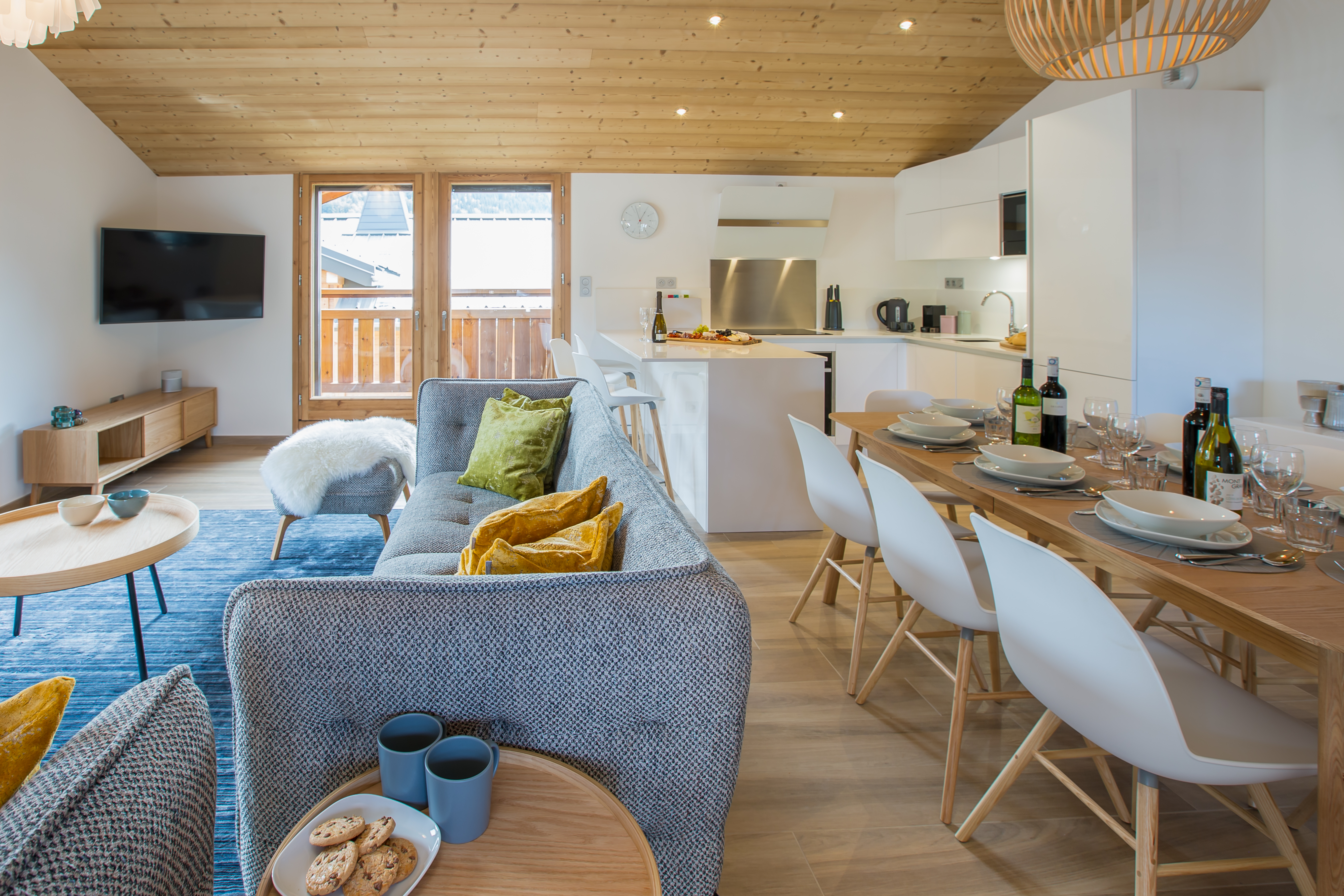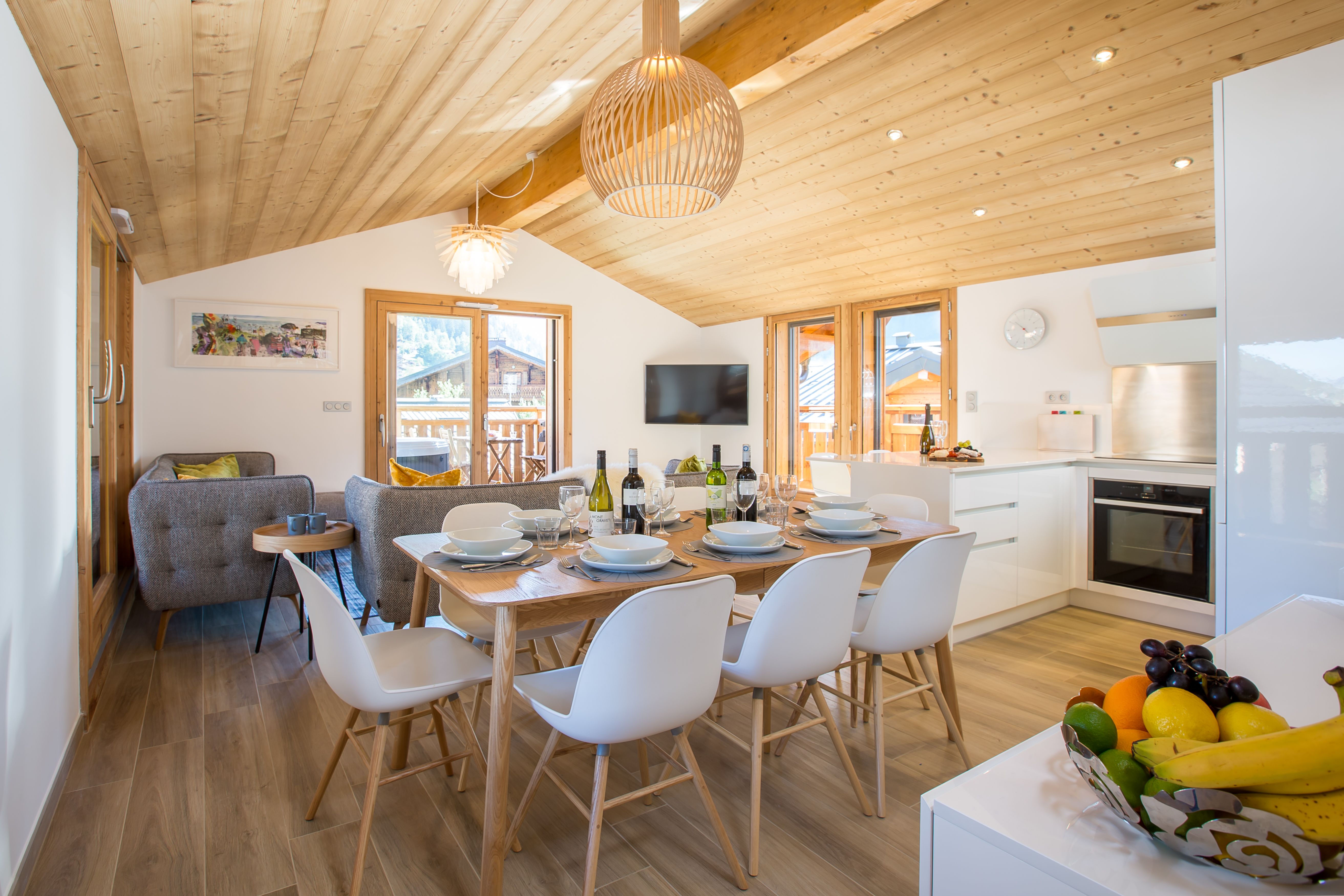 The Nordic Nest, a penthouse apartment on the top floor above our garden apartment, La Ruche. Facing away from the main road, Nordic Nest offers a peaceful enclave close enough to the action. The apartment is in a prime position, opposite the Pleney and Club ESF so a stones throw from ski lifts. The balcony has Morzine and mountain views over to Avoriaz.