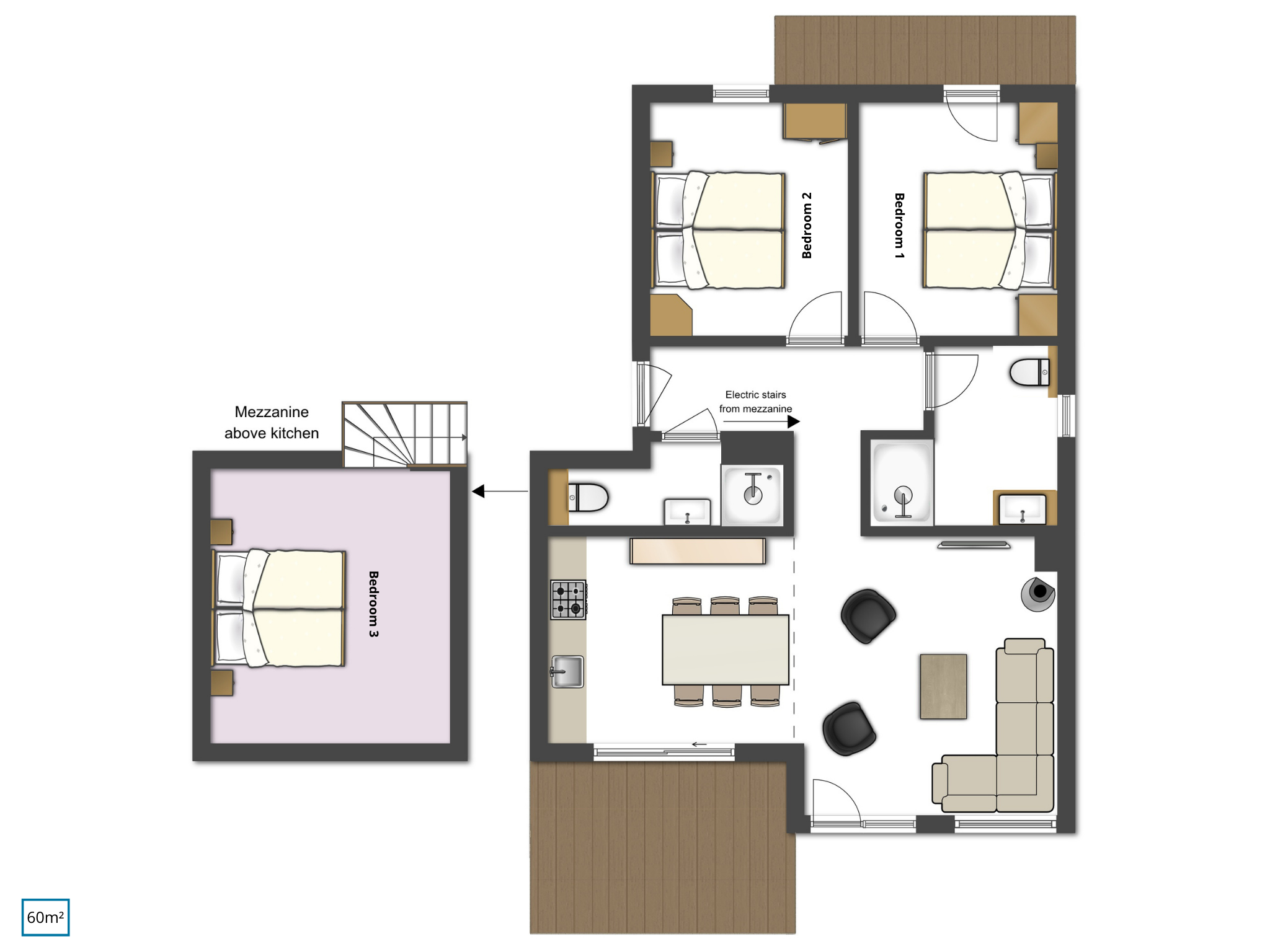 Well appointed Penthouse apartment, less than a 5 minute stroll into town in a tranquil riverside setting in central Morzine. Features 3 bedrooms and 2 bathrooms with large balcony, private parking and a private secluded position. Close enough to the action, but a peaceful spot to hide away.